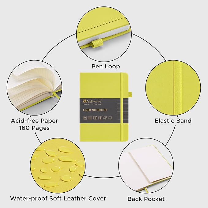 - 160 PAGES LINED NOTEBOOK: 80 sheets/160 lined pages provide ample space for writing. The A5 size (5.7'' Γ 8'') makes this notebook the perfect travel companion.