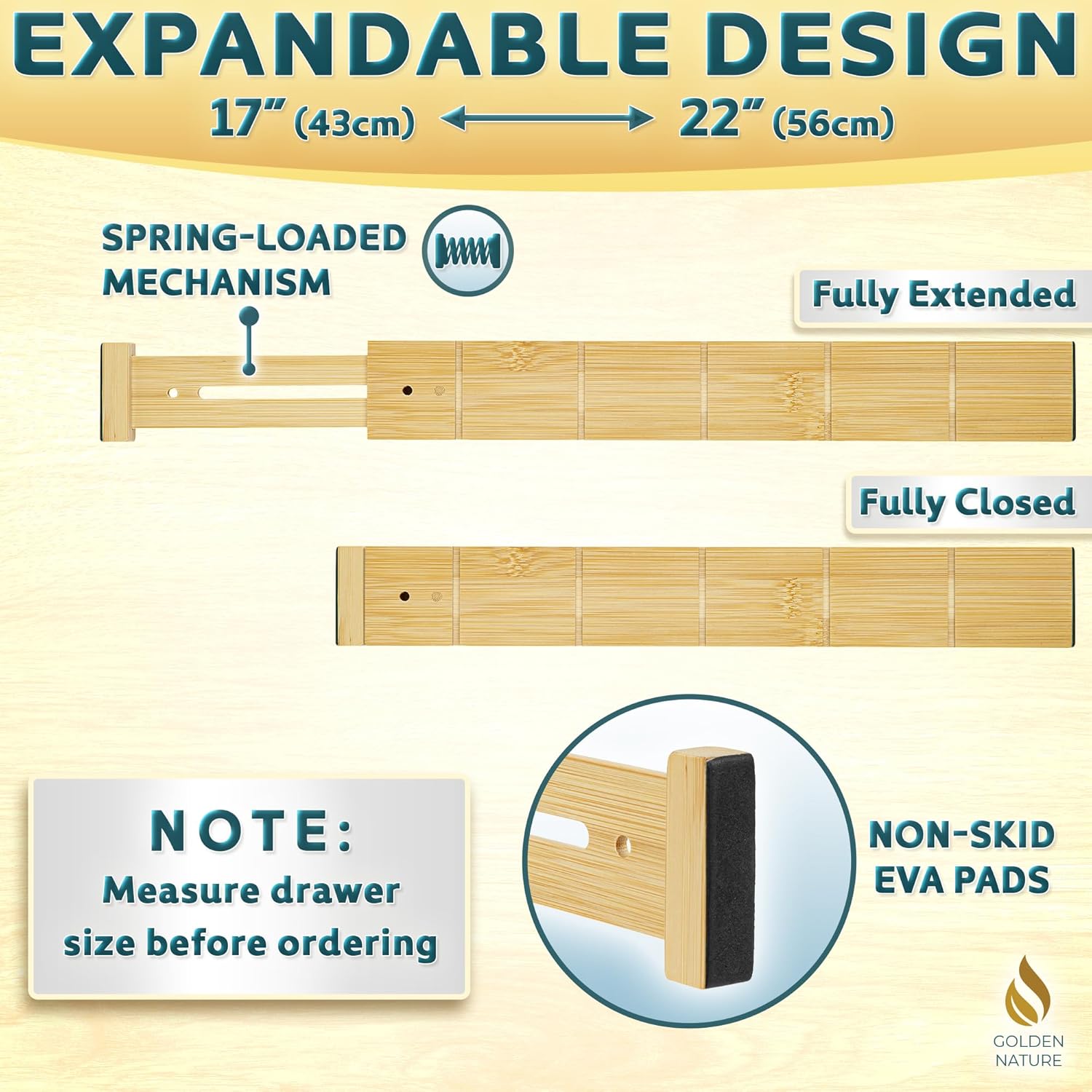 - PREMIUM-QUALITY BAMBOO - These heavy-duty separators are sturdy, durable, and resistant to wear and tear, ensuring long-lasting use; Plus, it has built-in EVA pads on both sides to prevent scratches and damage to drawers