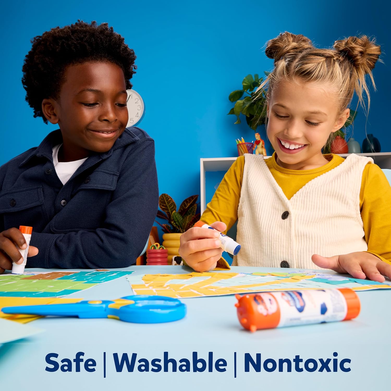 - Glue sticks that go on blue and dry clear so you can see where you are gluing