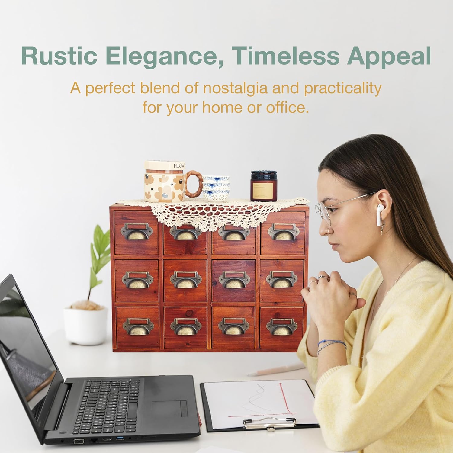 - Elegant Organization Made Easy: Organize your workspace or home with the 12-Drawer Brass Handle Apothecary Cabinet. Perfect for storing index cards, herbs, tea bags, or office supplies, this mahogany wood organizer combines vintage charm with modern utility.
