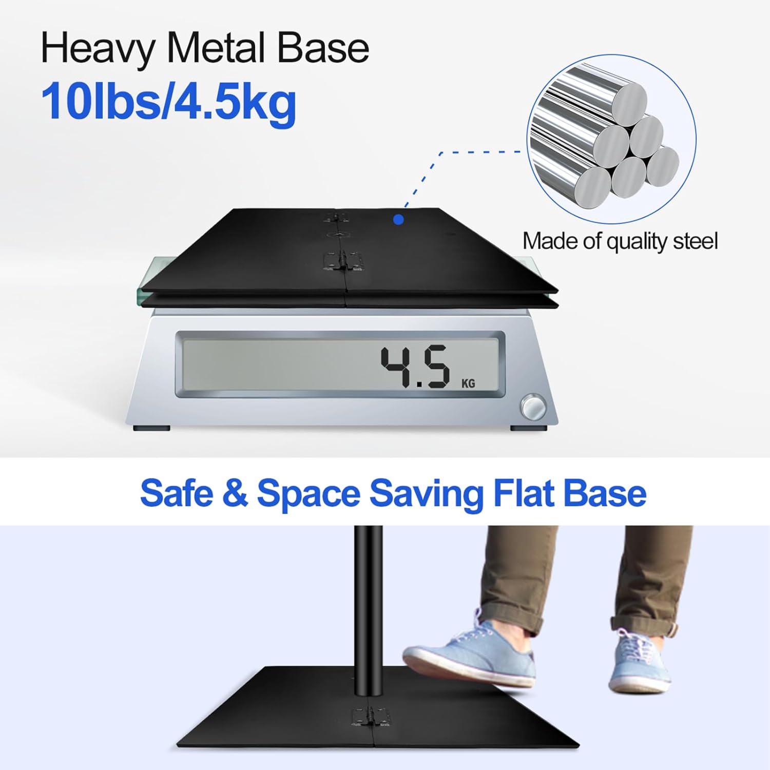 - γHeavy Metal Baseγ The base is made of good quality iron. And the large contact area as well as the weight ensure the stable support. Meanwhile, the heavy duty flat base can avoid the exposure of stand