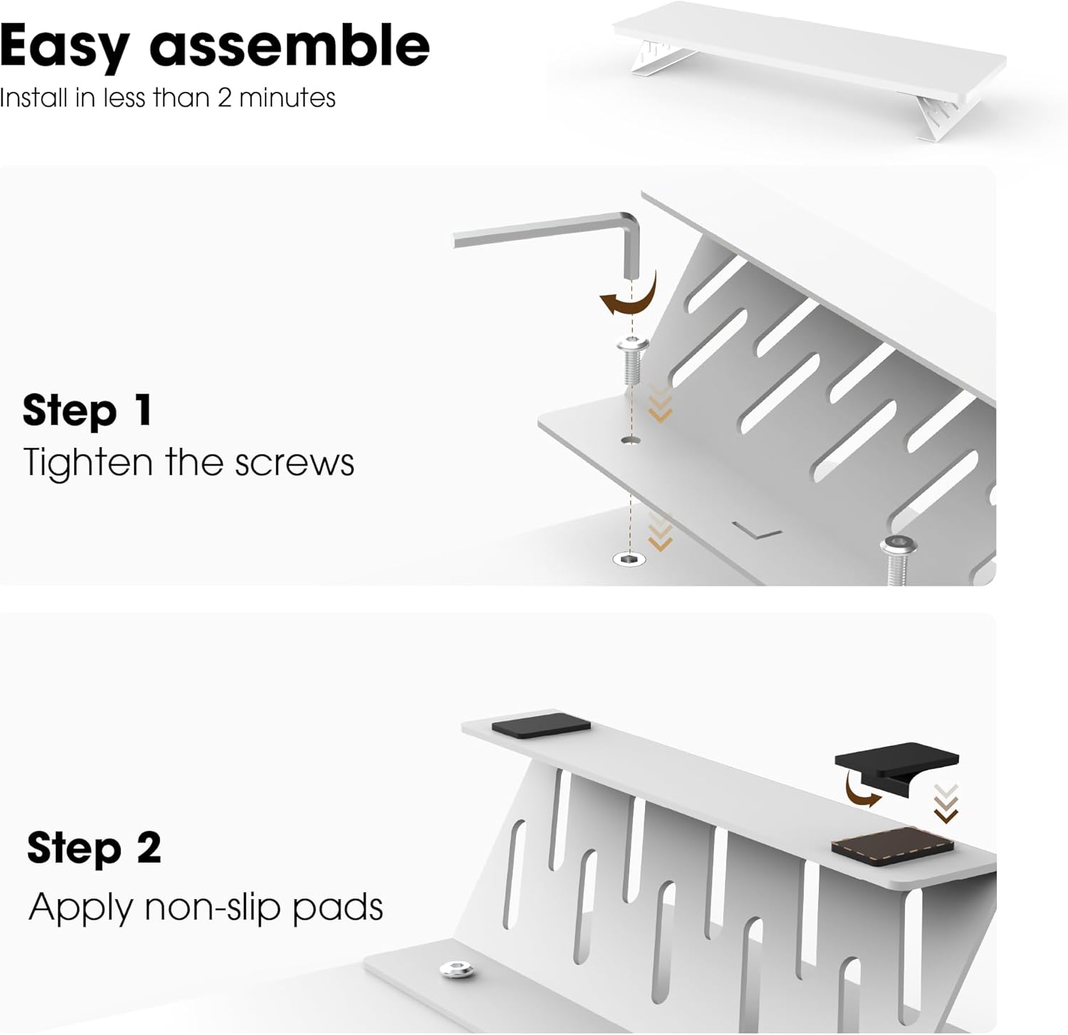 - 【Super Easy to Assemble】Our computer monitor riser comes with pre-drilled holes, all you need to do is screw the 4 brackets into the panel. You can install your dual monitor riser within 2 minutes!