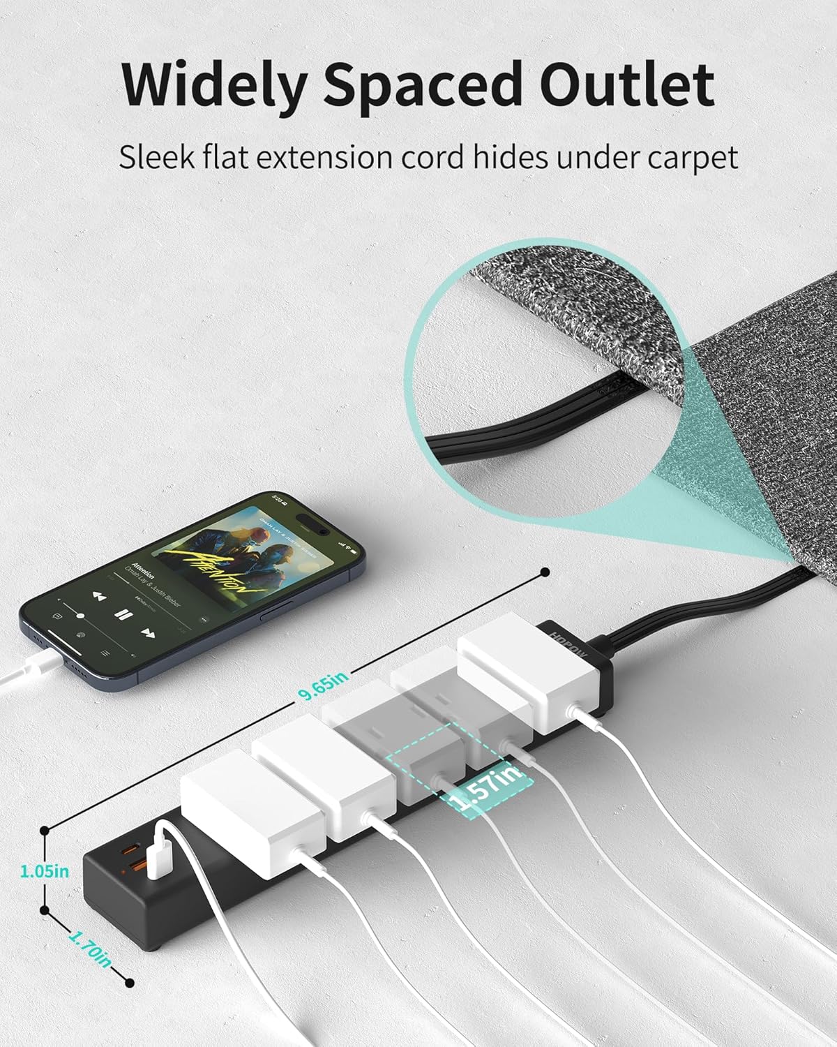 - 【Extremely Thin Extension Cord】The 10-foot flat cable is 50% thinner than the traditional power cords to run it under a rug or along walls without adding unsightly bulk or creating a trip hazard. It can keep unsightly cords hidden and allows furniture placement without having to accommodate them.