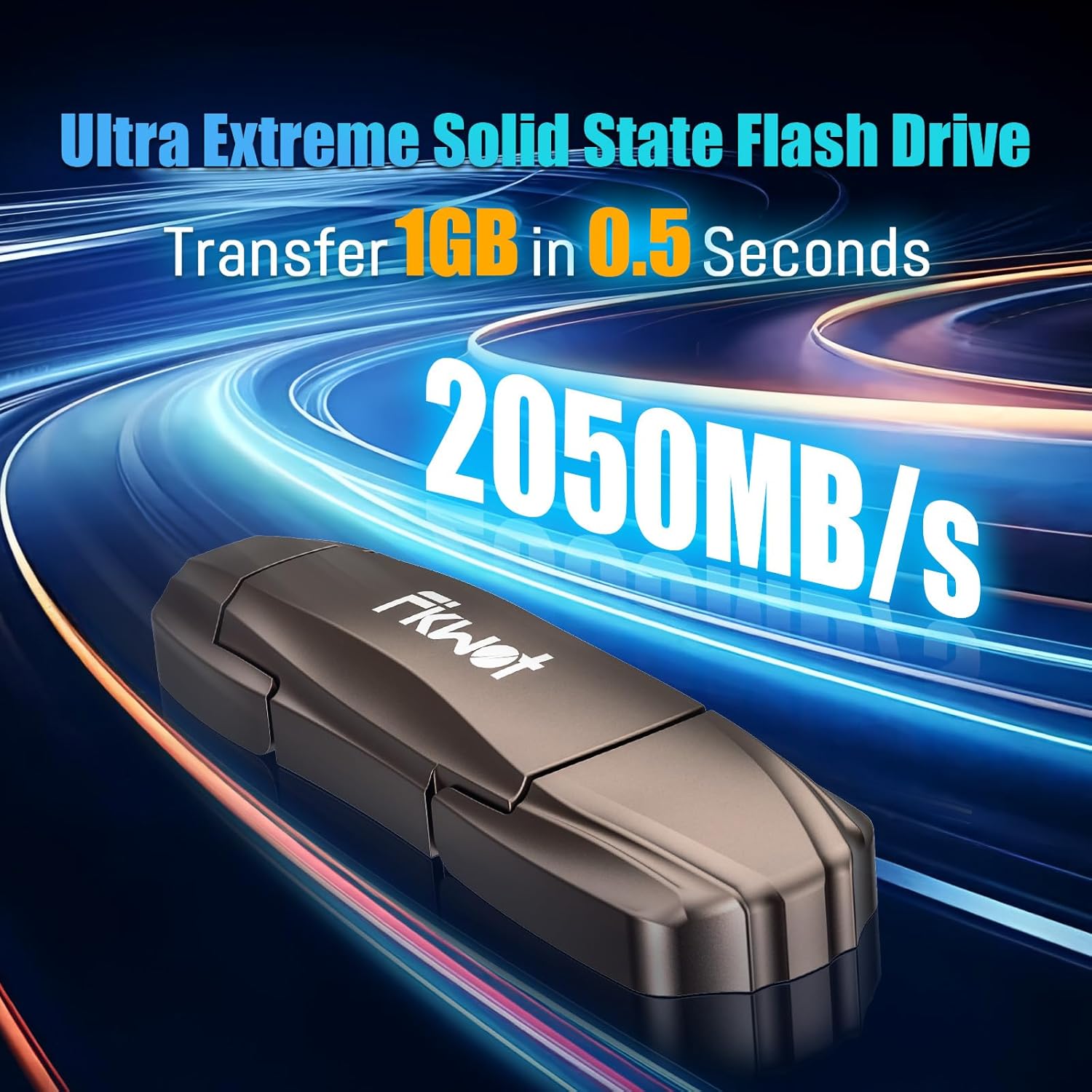 - [Ultra-Fast High Speed]: The FU389 portabl ssd 256GB delivers exceptional performance with a read speed of up to 2050MB/s and write speed of up to 1300MB/s. Experience transfer speeds dozens of times faster than traditional USB drives, perfect for storing large files quickly