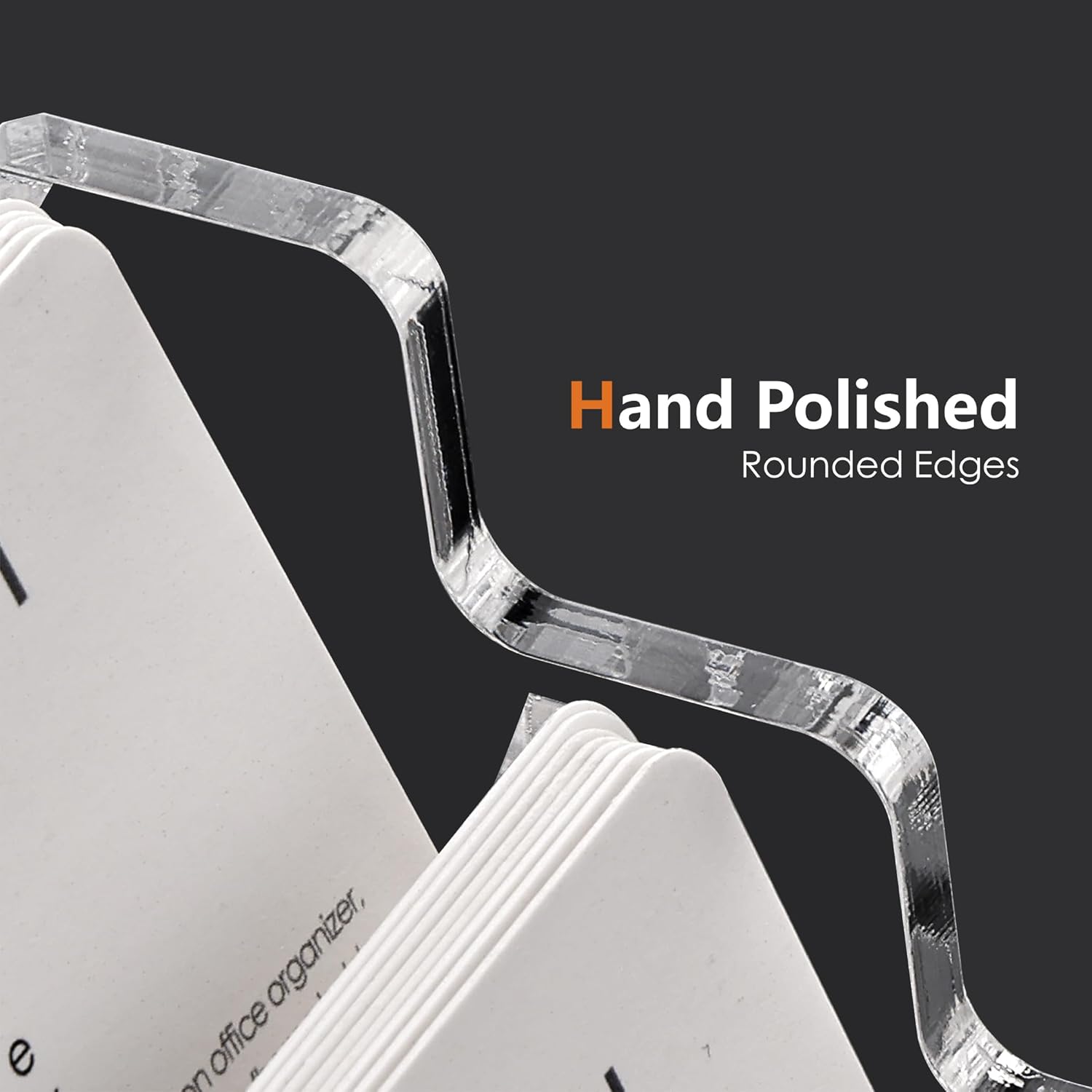 - CLEAR NAME CARD STAND - The Business Card Holder is Hand-Polished From High-Quality Acrylic Material, With A Smooth And Rounded Surface, Crystal TextureοΌModern Minimalist Style. A Must-Have Item For Fashionable Business People.
