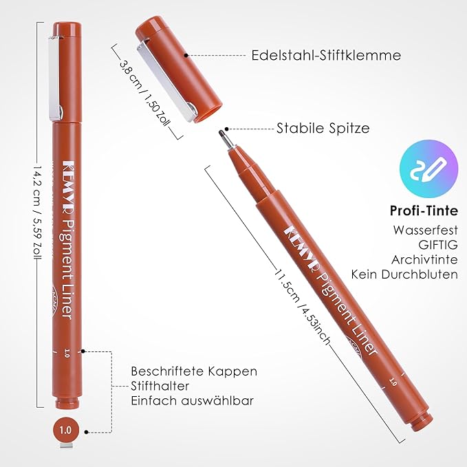 - Convenient and user-friendly: Both the pen body and cap have line width markings, allowing you to quickly find the line width you need from any angle. The stainless steel pen clip is very durable, and you can clip it onto your sketchbook, notebook, diary, and marker pads.