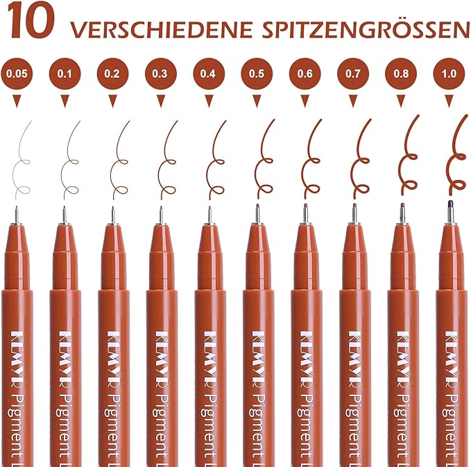 - 10 ASSORTED FINE LINE DRAWING PENS: Different pen tips unlock infinite possibilities and provide a perfect painting and calligraphic experience.FINE LINE Pens 0.05mm/0.1mm/0.2mm/0.3mm/0.4mm/0.5mm/0.6mm/0.7mm/0.8mm/0.9mm/1.0mm