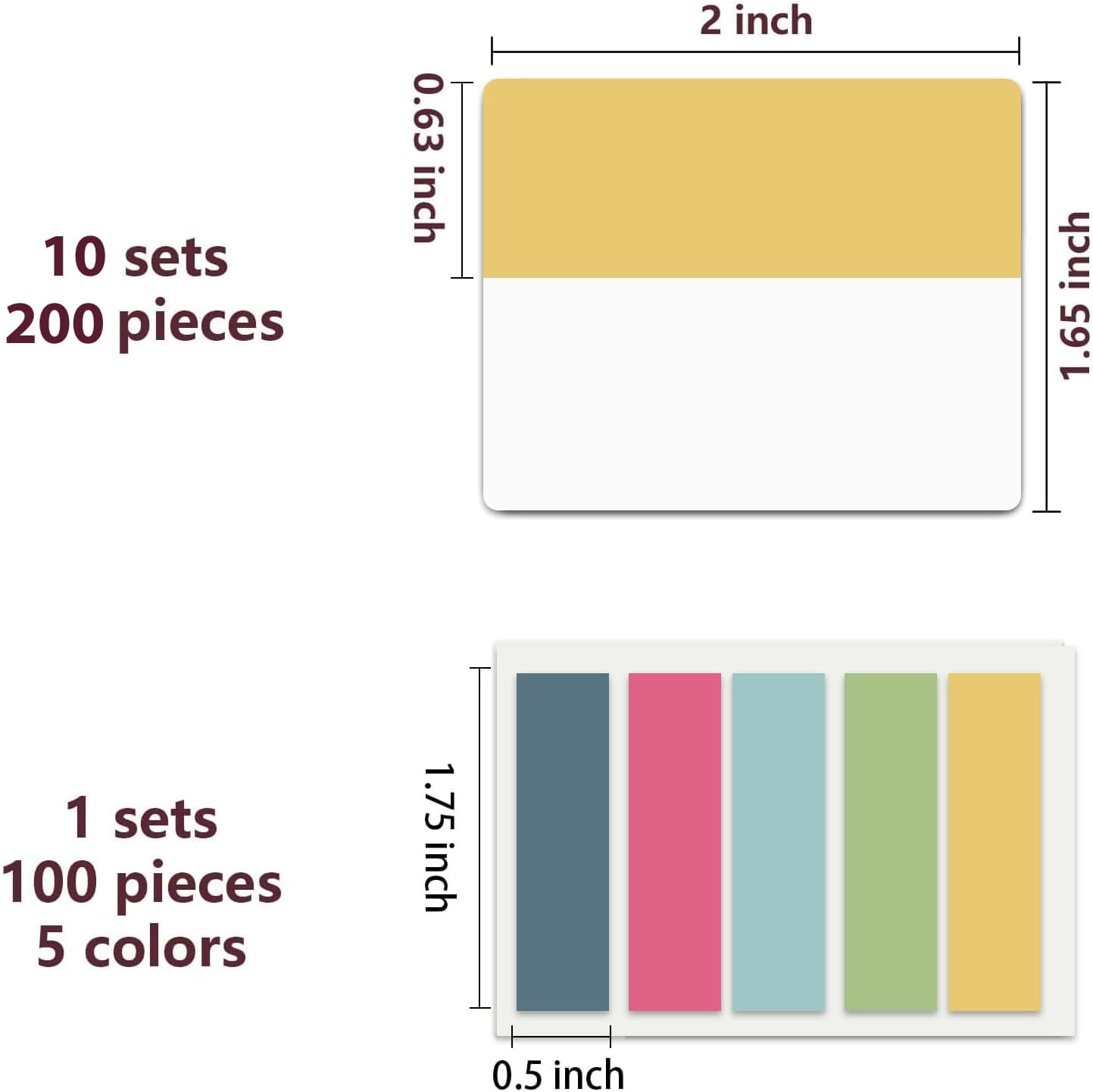 - 300pcs Book Tabs: 300 pcs 21 sets in total, 200 pieces 2 inch sticky tabs in 10 sets with different pastle colors,100 pieces 0.5 in tabs in 1sets, 20 pieces each color