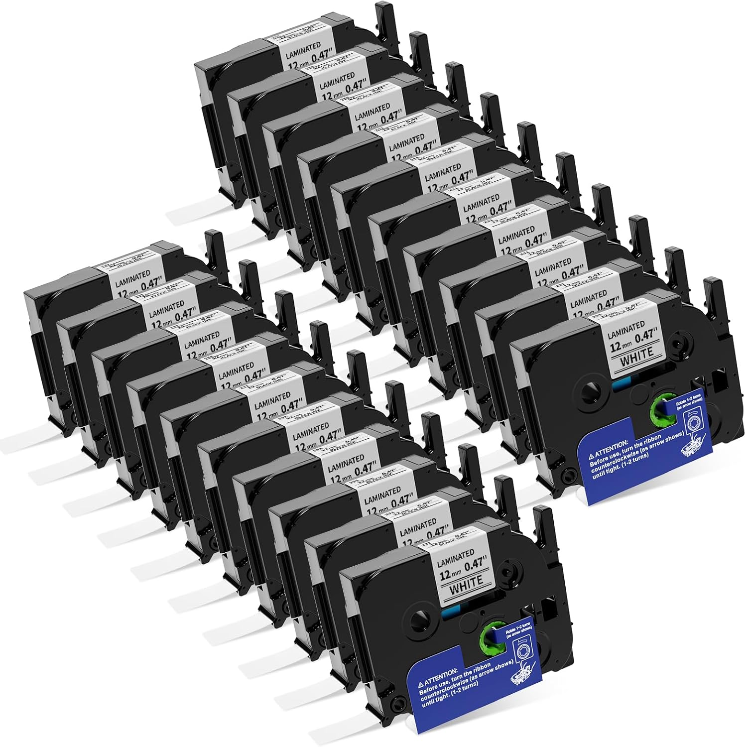 Replacement for P Touch Label Tape 12mm 0.47 Laminated White TZe-231 Compatible with Brother Label Maker Refills TZe231 TZ231 for PT-D200 PT-D210 H110 1280 2030, ½”(0.47”) x 26.2 ft. (8m), 20-Pack