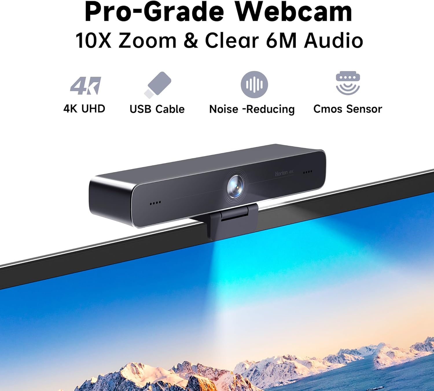 HORION 4K Webcam with Microphone, Auto Framing Camera for PC, 10X EPTZ Zoom, Plug & Play USB 3.0,Video with Dual AI Noise-Canceling Mic, for Video Conference, Streaming, PC/Mac/Linux, HC-5M