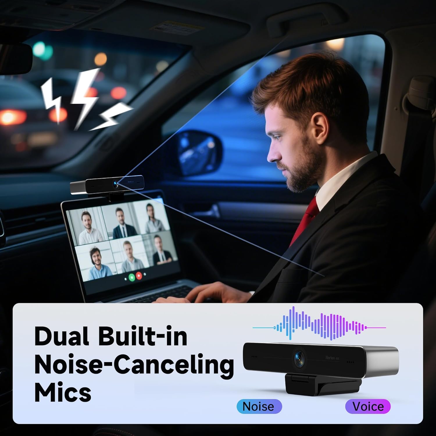 - γDual Built-in Noise-Canceling Mics PC CameraγEquipped with two built-in microphones, it captures clear audio up to 6 meters away. Advanced noise suppression technology filters out background sounds, ensuring crystal-clear voice quality for meetings, live streaming, or broadcasts, making it the ideal web camera for desktop computer.