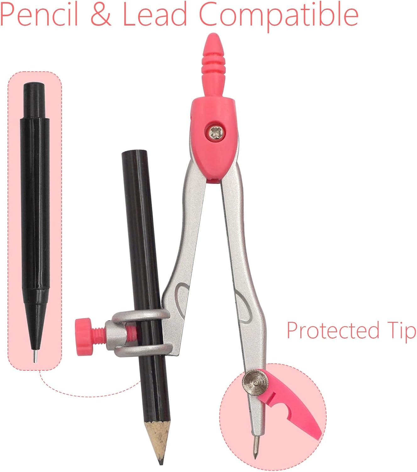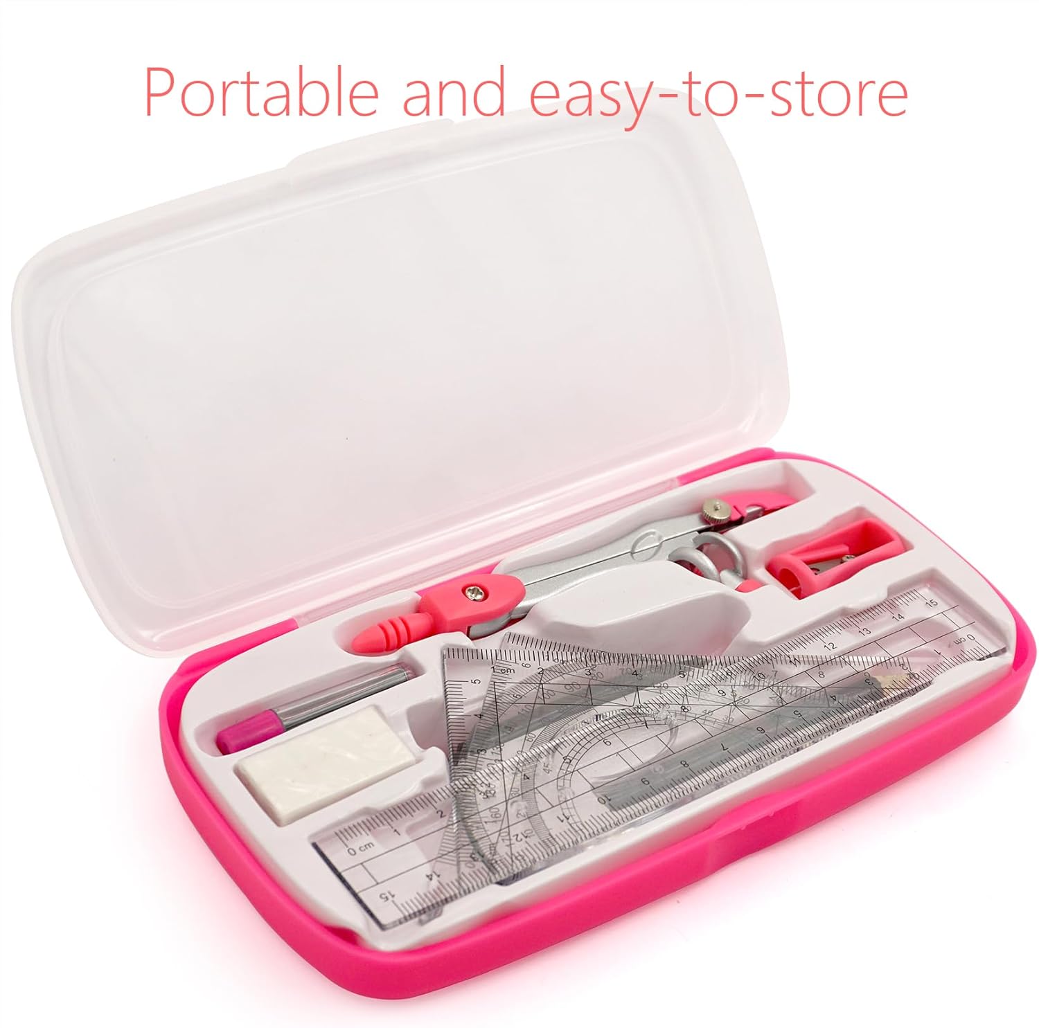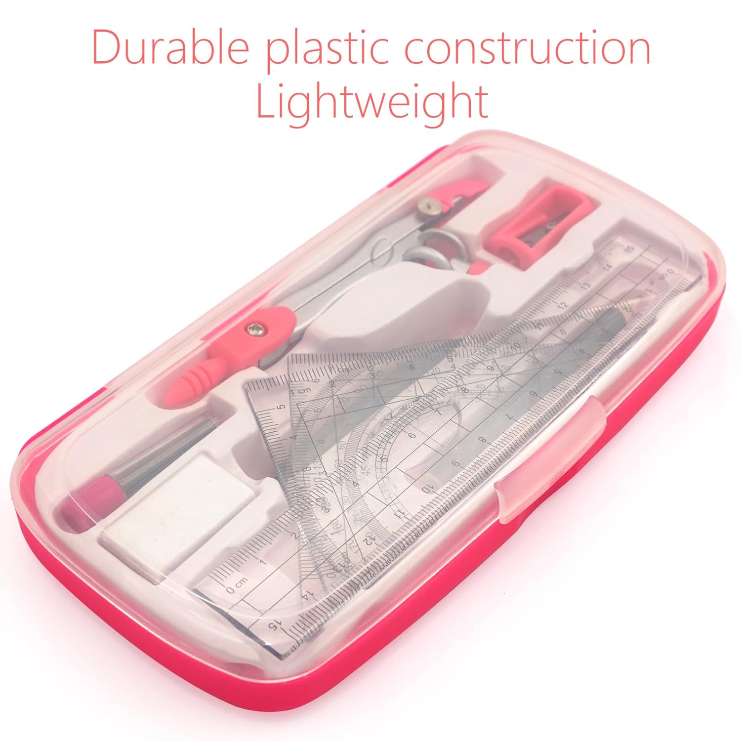 Geometry Compass Set Drafting Tools for School Students Geometry Compass Kit with Protractor, Set Squares, and Ruler Organized in a Plastic Case for Math Sarter and Homework – Stylish Pink