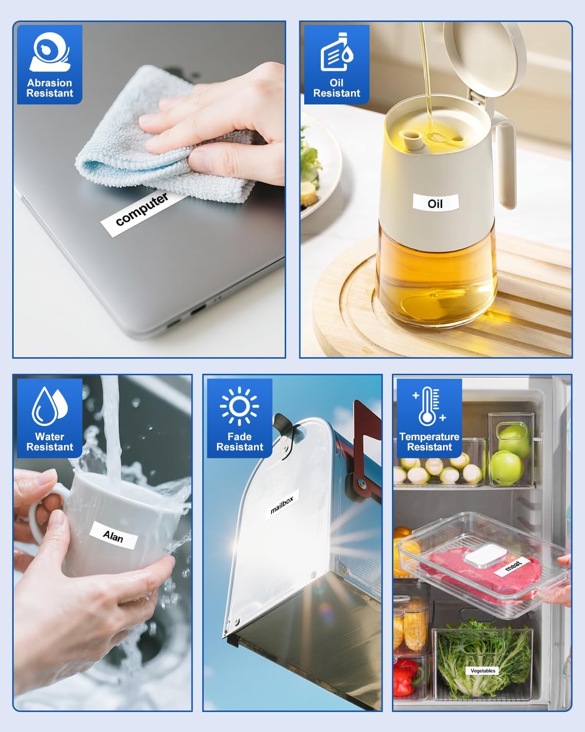 - Features: Our 12mm label maker tape split design makes the label tape easy to peel and apply, with strong adhesion/waterproof/temperature/oil/abrasion/fading, and reliably sticking to various surfaces