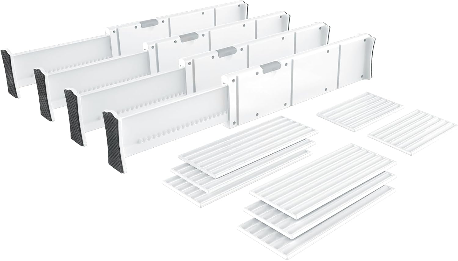 - 【Versatile Drawer Dividers】Install these dividers in kitchen drawers for utensils, knives, and forks. Use in vanity drawers for cosmetics, wardrobe drawers for socks,underwear and bras,and tool drawers for tape measures screwdrivers, Hardware Accessories,and tools. They're even great for bookshelves.