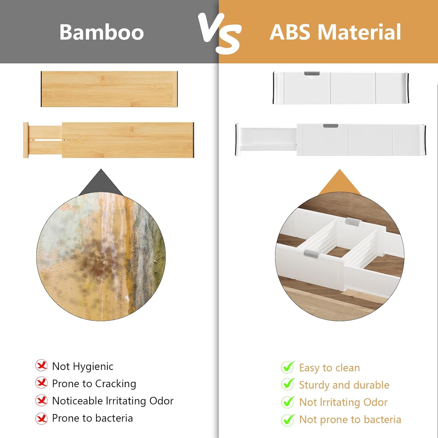 - 【The Upgraded Drawer Divider】Our upgrade drawer dividers are crafted from high-quality, environmentally friendly ABS material, ensuring safety and peace of mind. The upgraded drawer divider now features an innovative button-press mechanism that allows the divider to extend further, ensuring a more precise and secure fit against the drawer surface. This enhancement not only improves stability but also provides greater reliability, making it easier than ever to keep your items neatly organized. Experience the next level of drawer organization with our improved design!