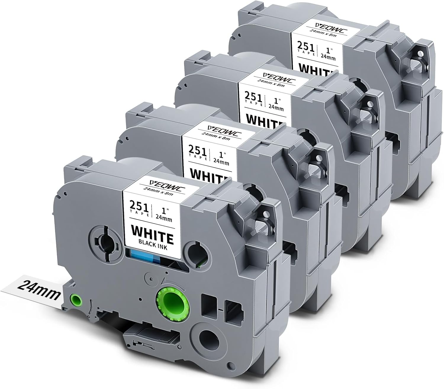 TZe251 24mm 0.94 Laminated White TZ Tape Replacement for Brother TZe-251 P Touch Label TZe Tape 24mm 1 Inch Label Maker Tape for Brother PT-D610BT PT-D600 PT-P710BT PT-P700 PT- P910BT, 4-Pack