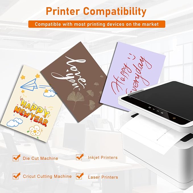 - ▶Printer Compatibility:our thick printer paper card stock is compatible with most types of laser printers, inkjet, die-cutting machines, and cricut cutting machines. Please ensure that your printer can print on 200gsm before ordering