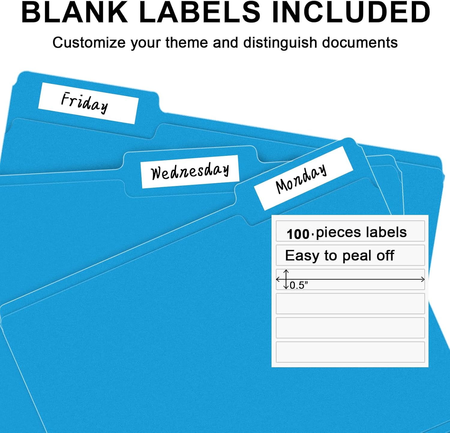 - PACKAGE INCLUDED: This bulk pack includes 100 letter size file folders (50 of each position) and 100 blank labels, ideal for any home, office, or school project, providing you with plenty of storage space for all of your important documents