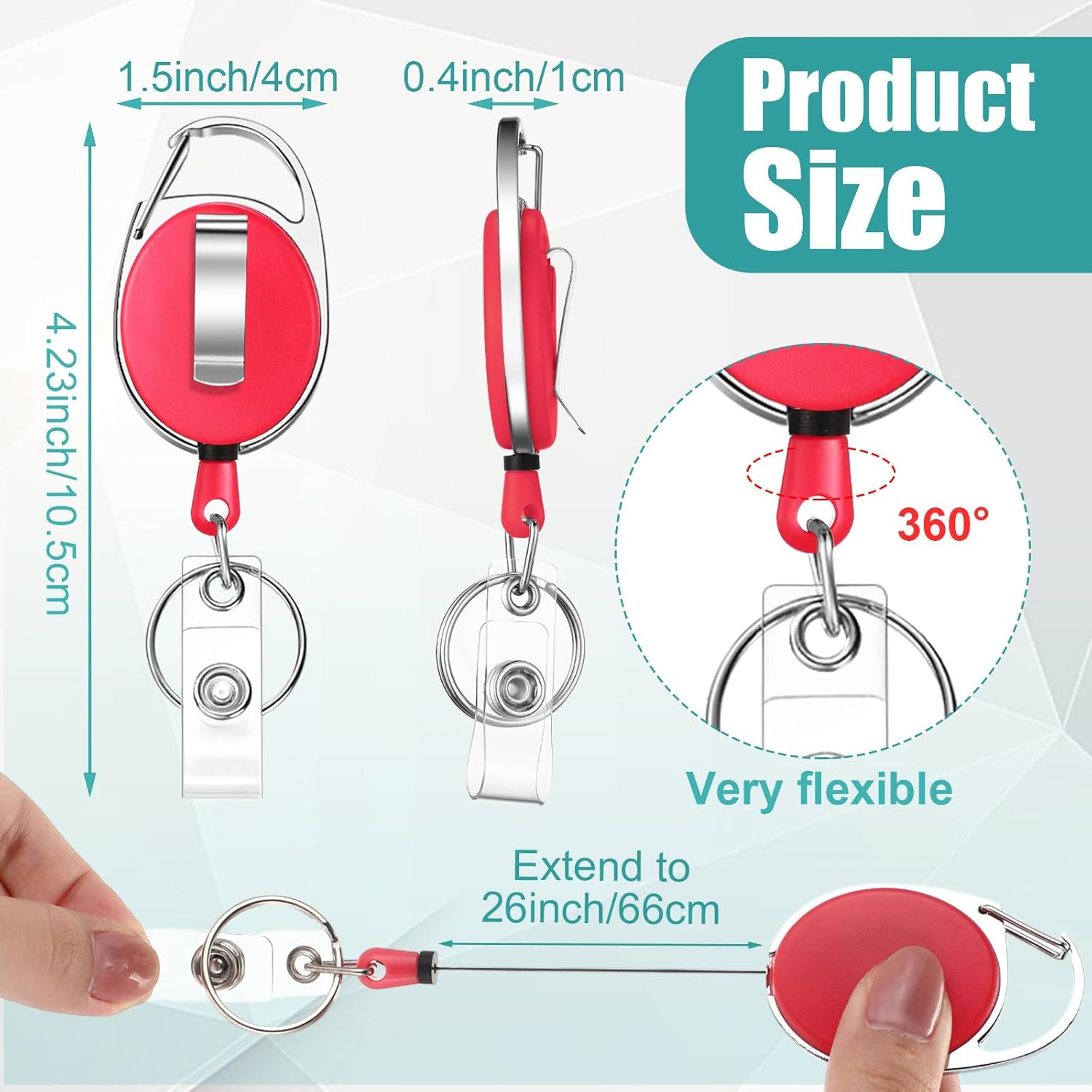 - Size: retractable keychain size is 4.13 x 1.57 inch/ 10.5 x 4 cm, designed with a retractable cord, can extend up to 26 inch/ 66 cm long, the retraction mechanism is very smooth, will not get stuck, and not easy to break, easy to enter and exit various places