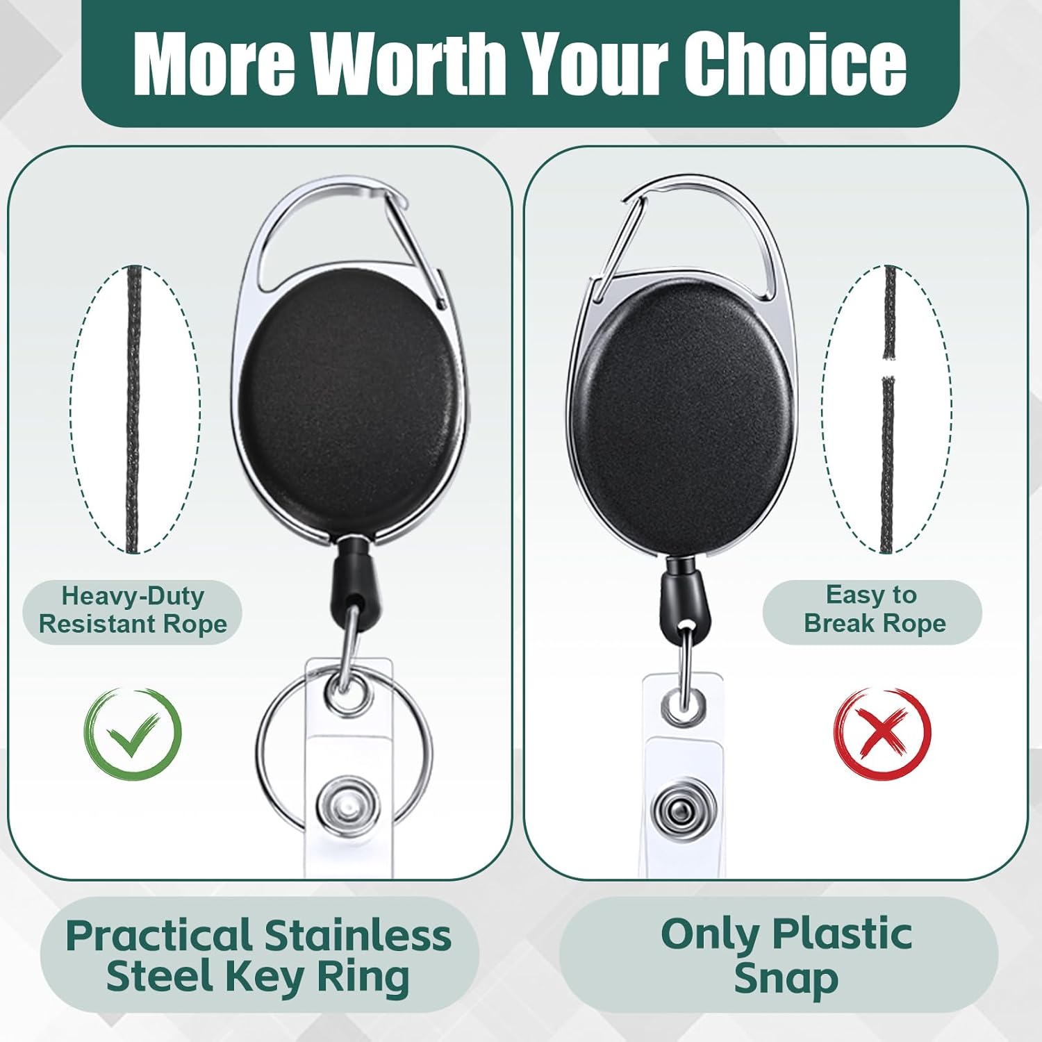 - Package: you will get 20 packs of retractable badge clips, featuring clip, stainless steel key ring, vinyl snap strap and plastic cover, clip attachment for effortlessly and quickly fastening to belt loops, straps, backpacks, bags and more, allow a quick and easy way to scan or swipe your badge