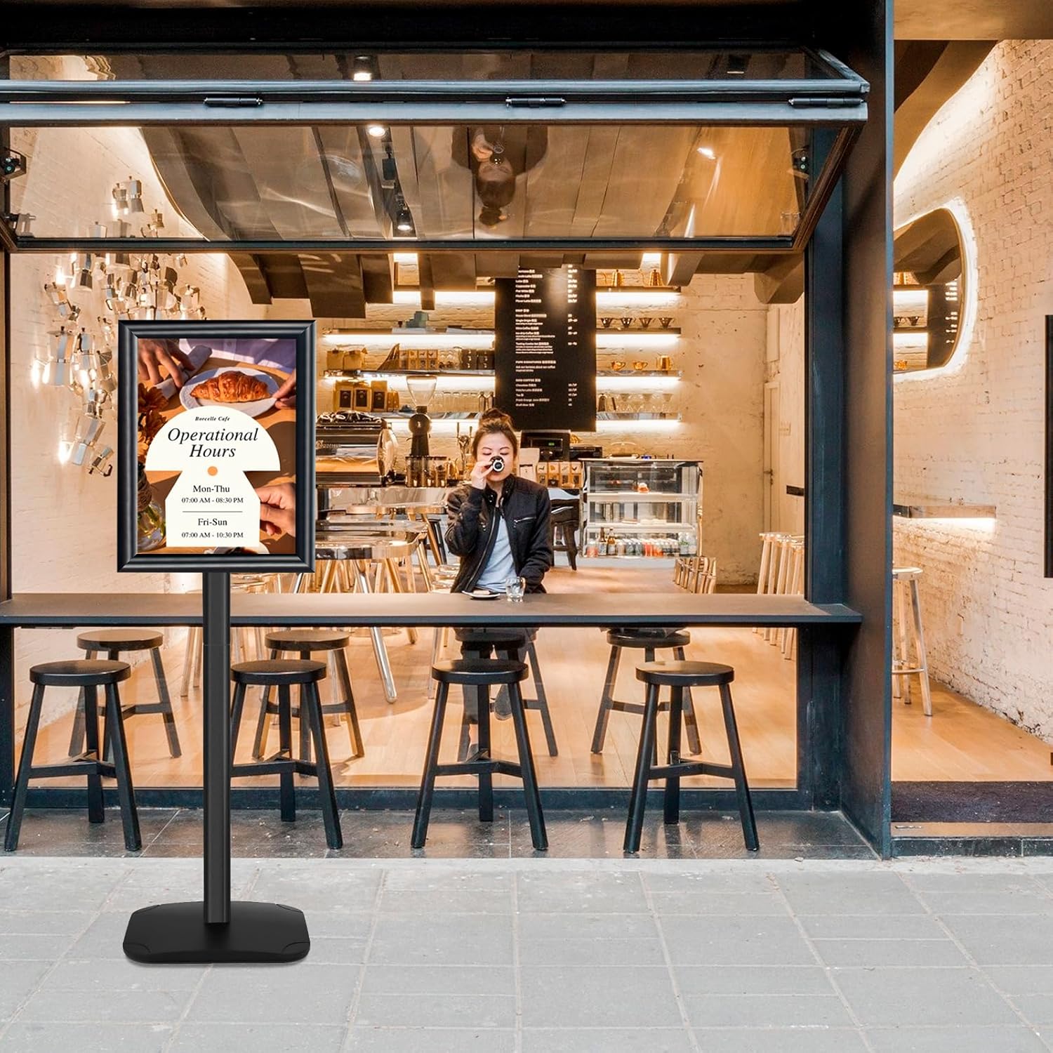 - ✅【Versatile Applications】The floor standing sign holder excels in displaying posters, directions, warnings, and signs like "please wait to be seated" sign, as well as serving as a menu stand.