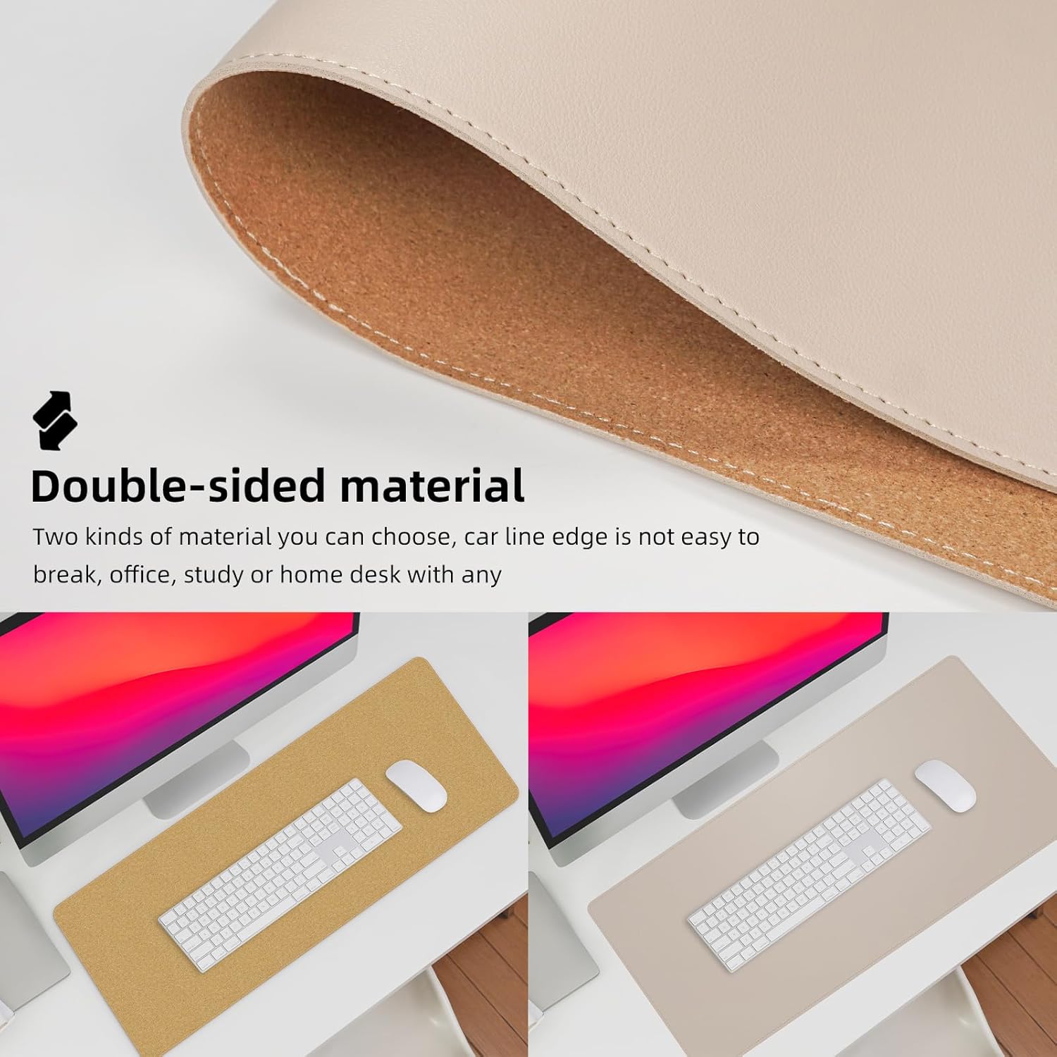 Leather Desk pad Protector, Large Desk mat with Natural Cork & PU Leather,Mouse pad,Non-Slip Office Desk Mat,Waterproof Desk Writing Pad for Office and Home (47in*17in, Beige)