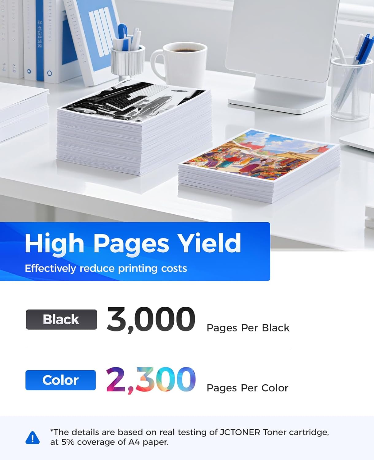 - High-Yield: up to 3,000β¬ pages per TN229XL Black and 2,300 pages per TN229XL Color (Total 9,900 pages, 5% coverage).