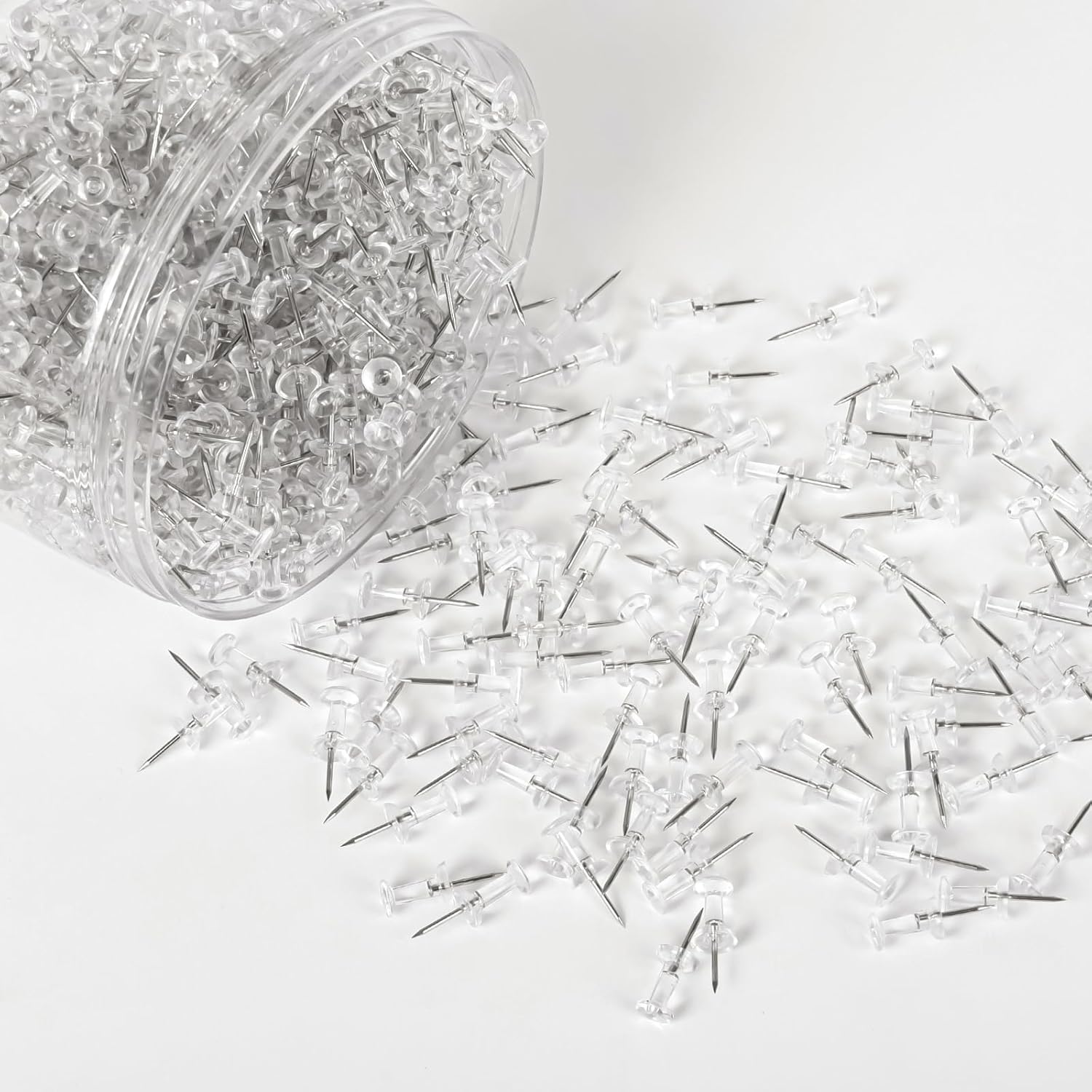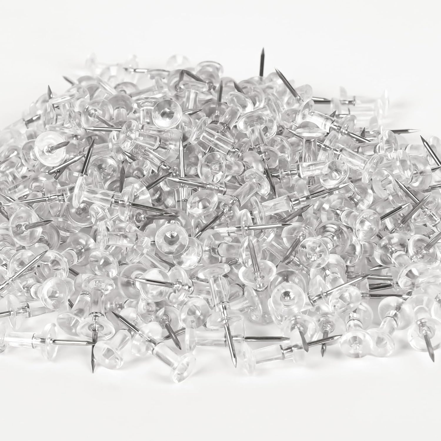 1000 PCS Clear Push pins Tacks for Wall Cork Board Bulletin Board use Clear Plastic Head Pins for Home Office Craft Projects