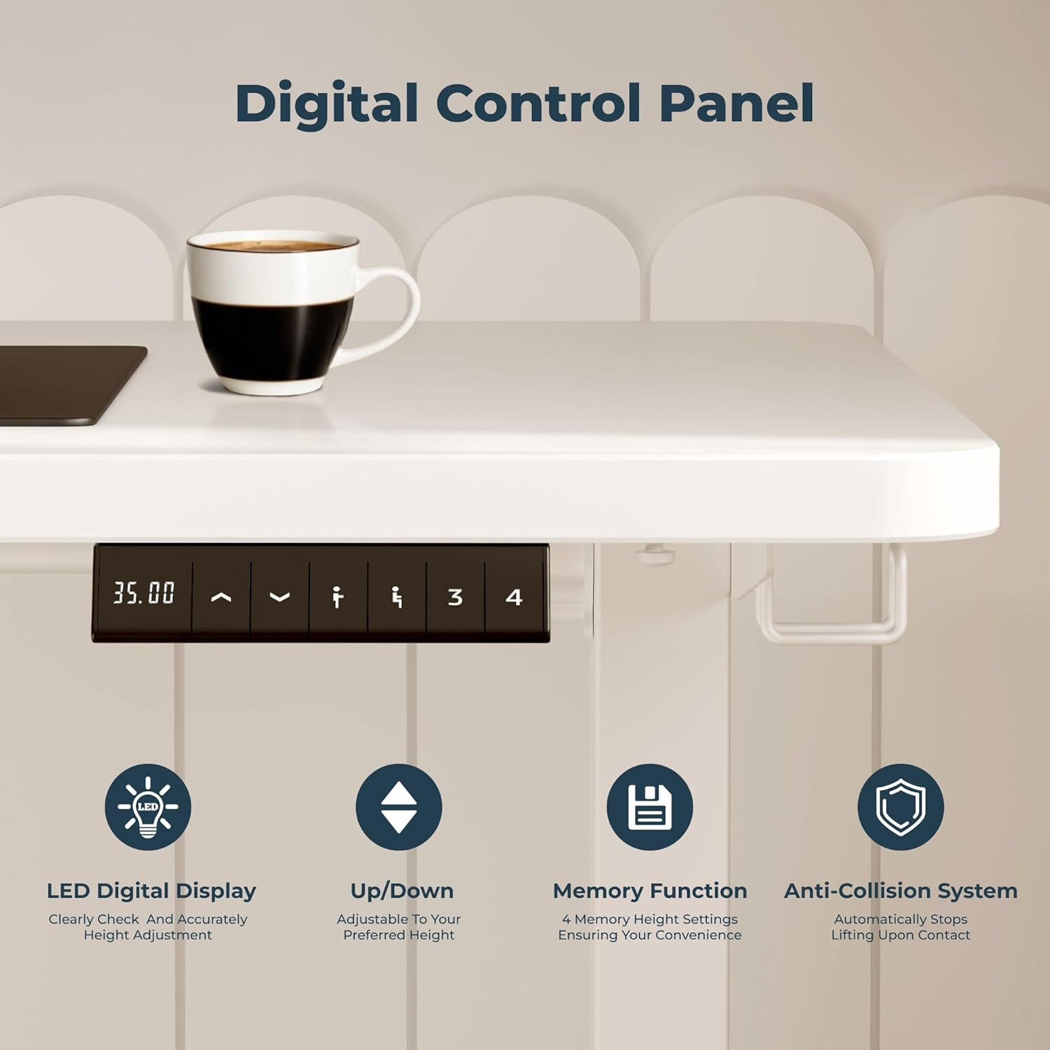 - Adaptable Memory Mechanism: Our sit stand desk boasts a memory height system with the controller that can be pre-set to 3 different heights, giving you the convenience to switch to your preferred height settings with just a click.