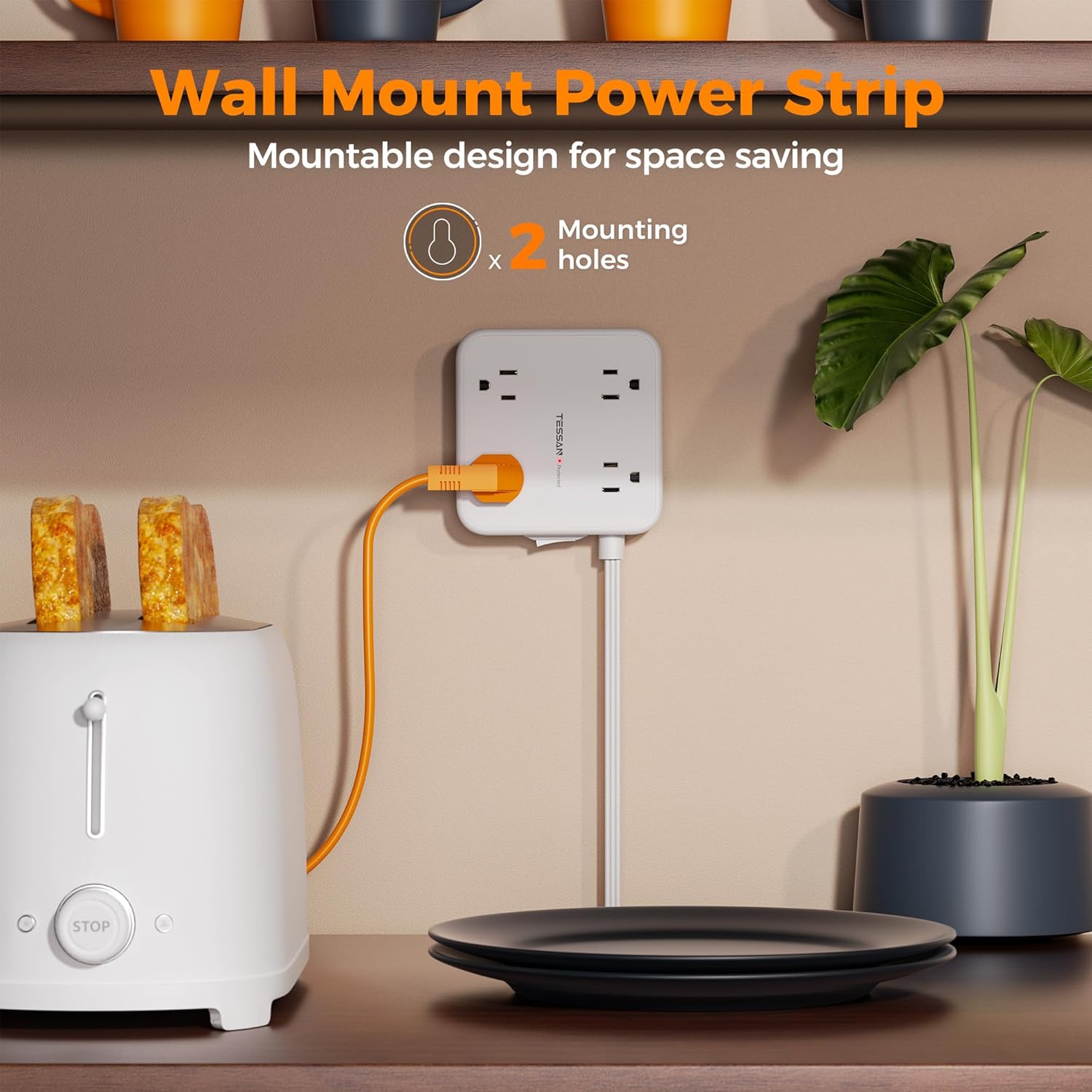 Surge Protector Power Strip, TESSAN 15 FT White Extension Cord Flat Plug with 8 AC Outlets 3 USB Ports (1 USB C), 900J Surge Protection, 3 Sided Wall Mountable Outlet Extender for Office Dorm Room