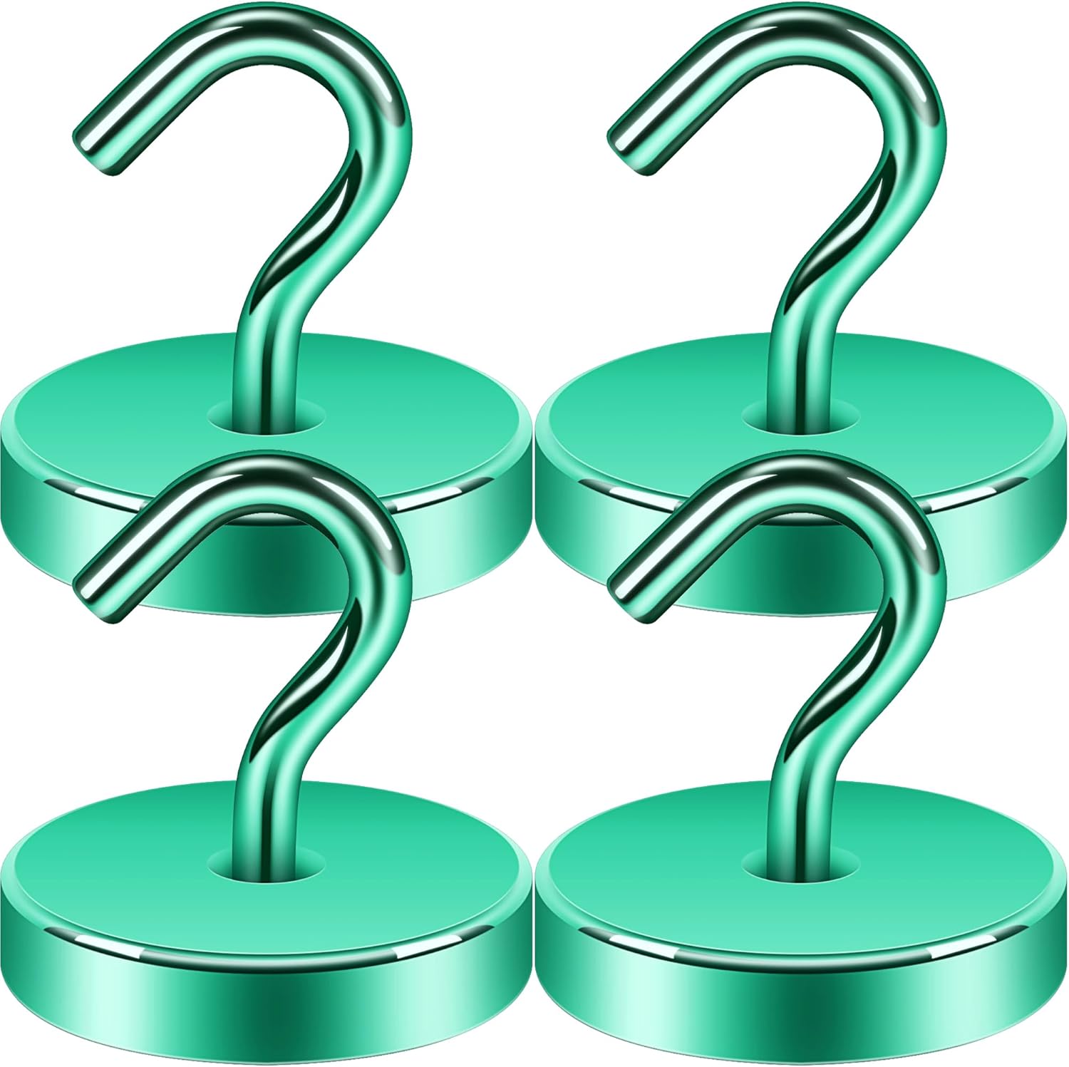 Neosmuk Magnetic Hooks, Heavy Duty 170lb Strong Magnets for Cruise Cabins, Ship Essentials, Large Metal Hooks for Hanging on Fridge(Green,Pack of 4)