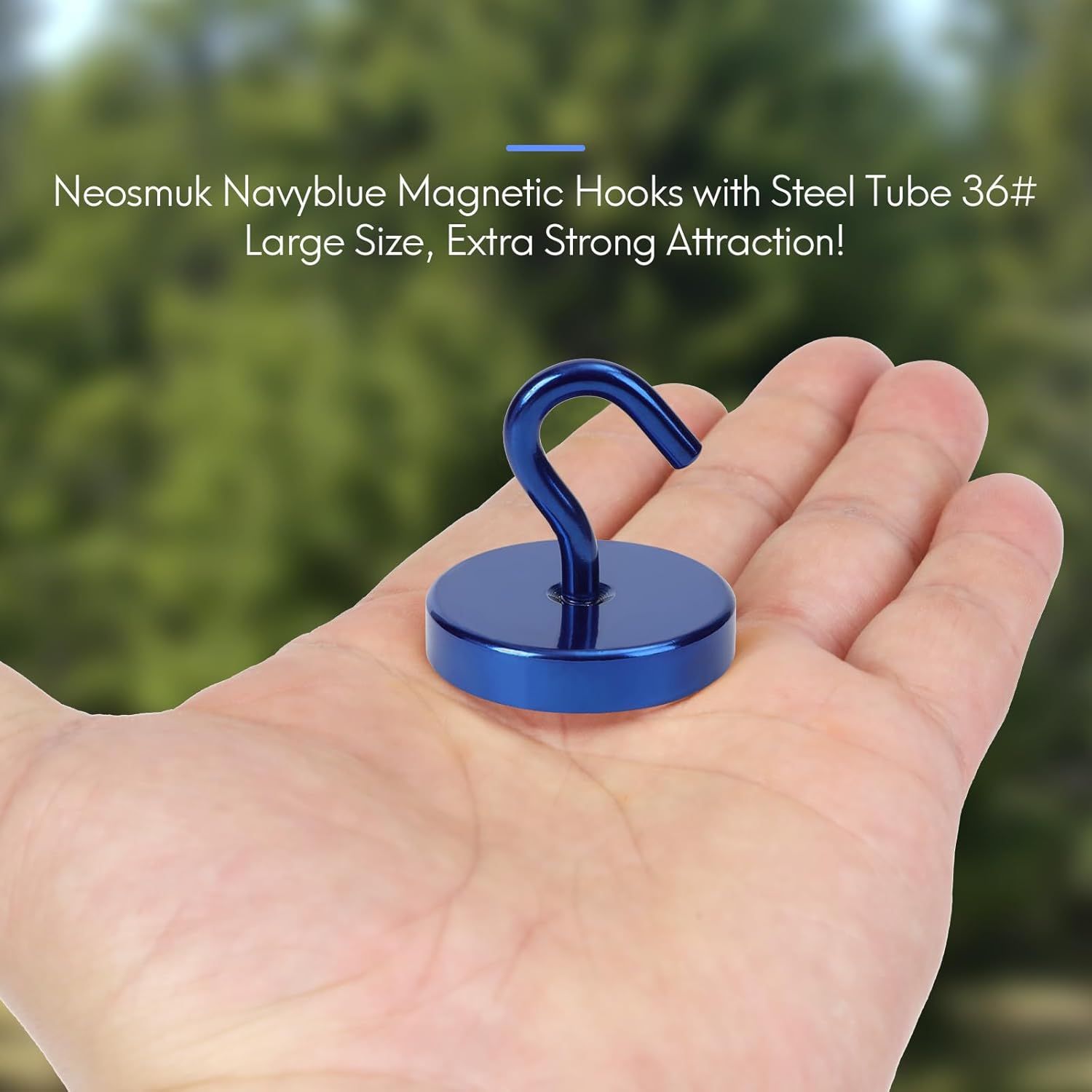 Neosmuk Magnetic Hooks, Heavy Duty 170lb Strong Magnets for Cruise Cabins, Ship Essentials, Large Metal Hooks for Hanging on Fridge(Navyblue,Pack of 4)