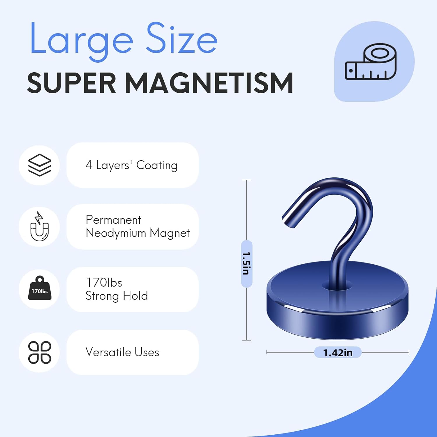 - SUPER POWERFUL MAGNETIC HOOKS FOR HEAVY-DUTY USE-Experience unmatched strength with Neosmuk magnetic hooks. With a 1.42-inch CNC-machined steel base and high-grade neodymium magnets, each hook delivers up to 170lb of holding power on a 0.39-inch iron plate. These heavy-duty magnet hooks are perfect for cruise cabins, ship walls, lockers, or any metal surface. Reliable and durable, these hooks are designed for your toughest jobs!