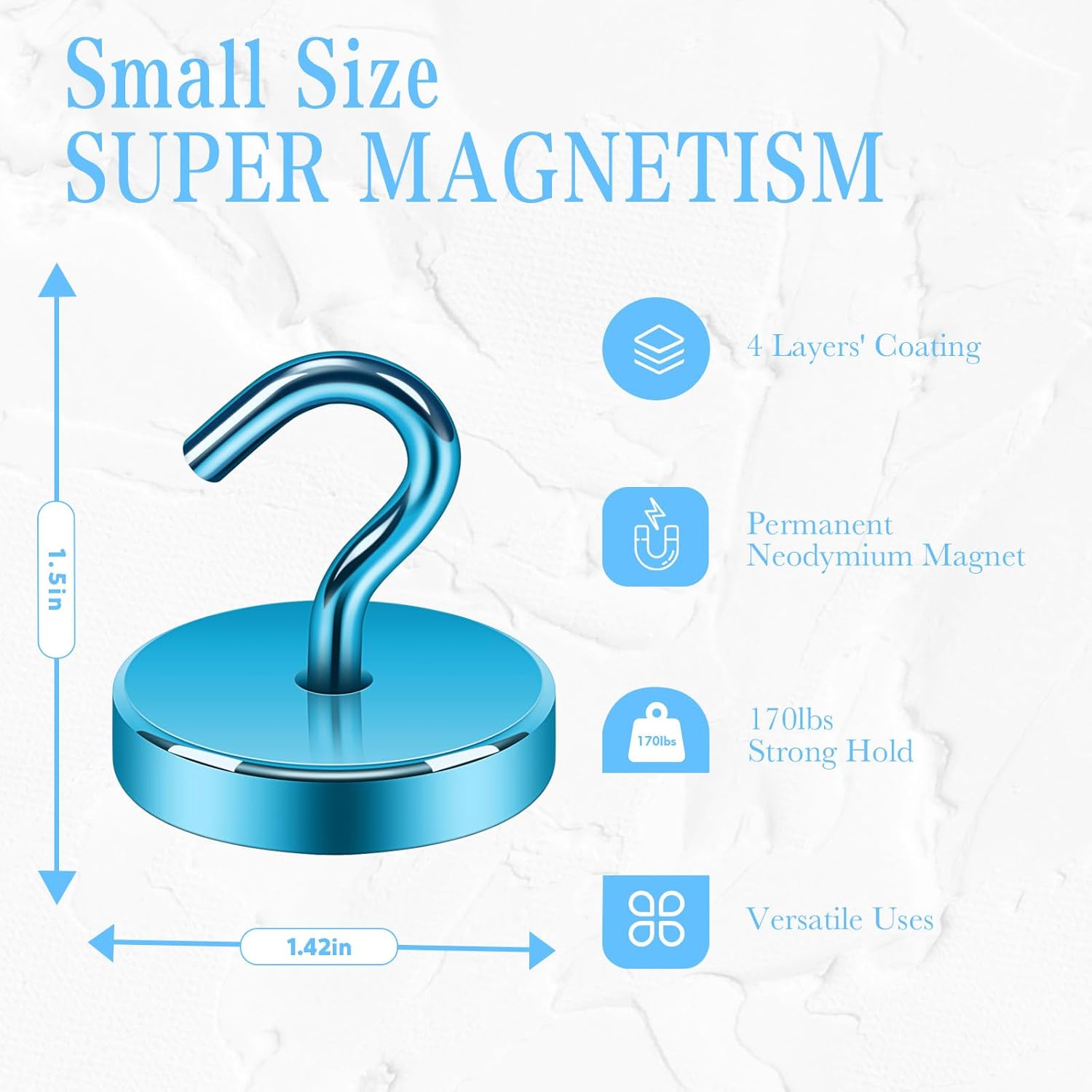 - HIGH-QUALITY PLATING FOR LONG-LASTING DURABILITY-Our magnetic hooks feature a triple-layer coating of bright nickel, copper, and bottom nickel, ensuring a rust-free, mirror-like finish that resists scratches and corrosion. Ideal for both indoor and outdoor use, these strong metal hooks are perfect for your kitchen, fridge, doors, walls, or any industrial setting. Maintenance-free and built to last!
