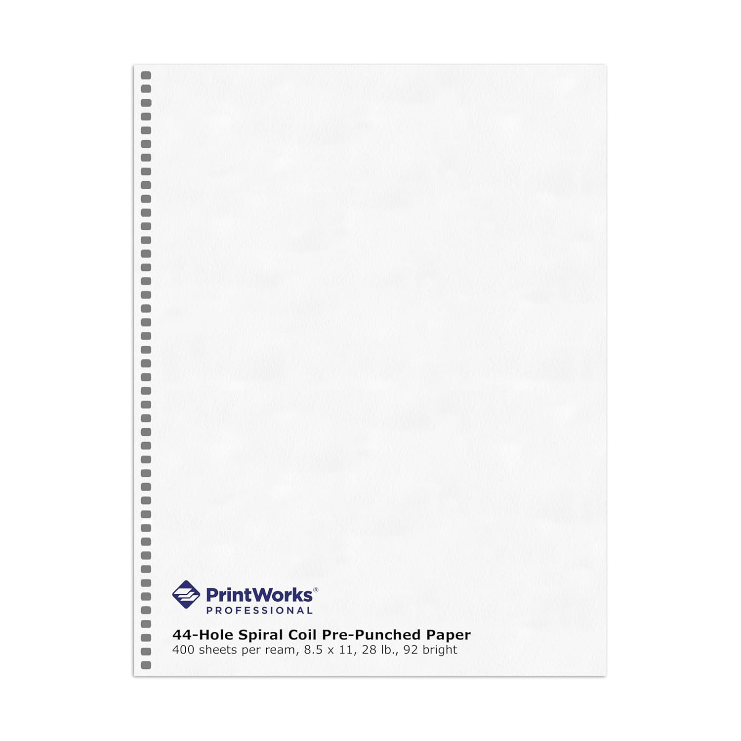 PrintWorks Professional Pre-Punched Spiral Binding Paper - 44-Hole (4:1 Pitch Hole Punch) - Book Binding Printer Paper - Made in the USA - 400 Sheets - 8.5" x 11" - 28 lb - 92 Bright White (04165)