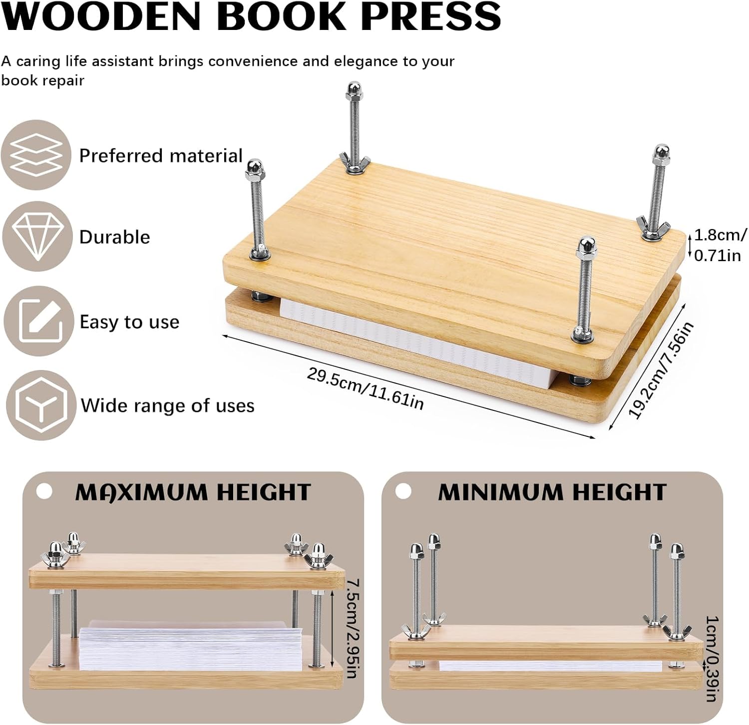 JUPEAN Book Press—7.9”x11.6” Wooden Book Binding Press Bookbinding Kit Portable and Easy Assemble Books Binding Kits for DIY Bookbinding