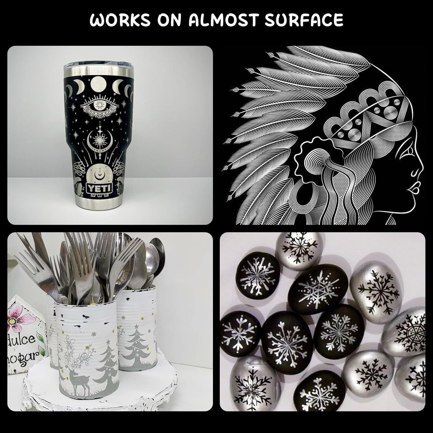 - VIBRANT METALLIC SILVER FINISH - Unleash a stream of brilliant, opaque silver! This paint marker creates a stunning metallic shine that elevates any project. Perfect for adding elegant accents, eye-catching highlights, and a professional touch of luxury to your crafts.