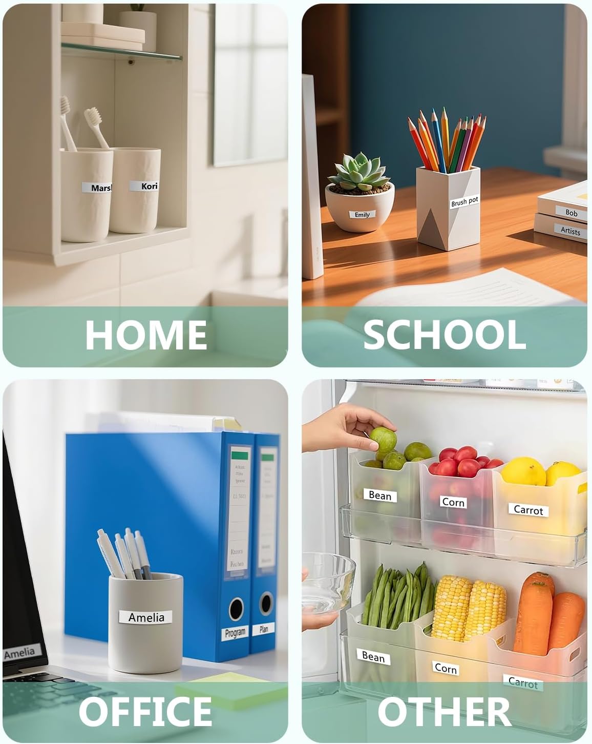 - Applications: The laminated 12mm 0.47 white tape is suitable for indoor or outdoor use. Such as home, office, school, industry, warehouse, chemistry laboratory, hotel, and hospital. It is perfect for labeling gifts, kitchen seasonings, files, folders, shelves, and books