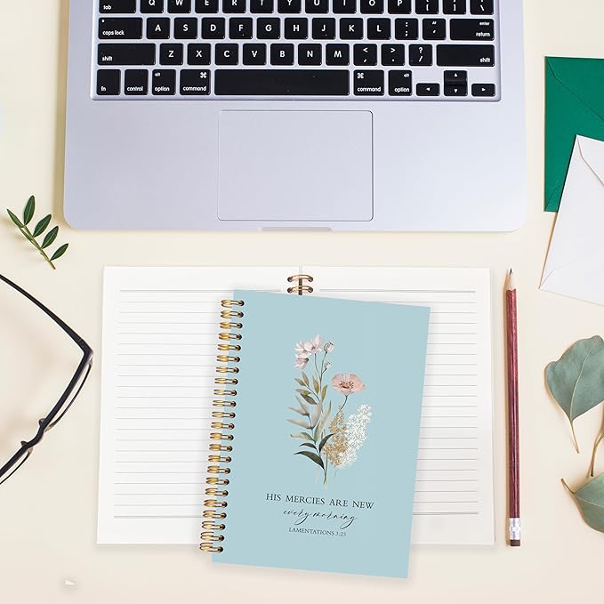 BearCake Blue Bible Christian Journals Floral Notebooks for Women Note Taking,Prayer Journal for Women, His Mercies are New Every Morning,Bible Study Journal for Women 5.5x8.3