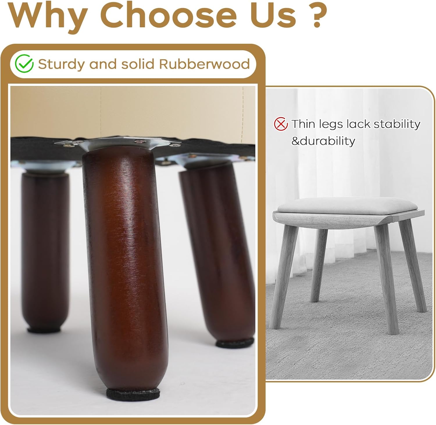 - γAnti-Slip Designγ- These leather foot stools small ottoman rubber legs come with dedicated felt pads to prevent scratches on floor and keep it from sliding.Wood leg with non-slip felt pad is quiet when moving, and can avoid leaving scratches on floor.The small footstool is perfect for small spaces and is compact enough not to get in anyone's way.