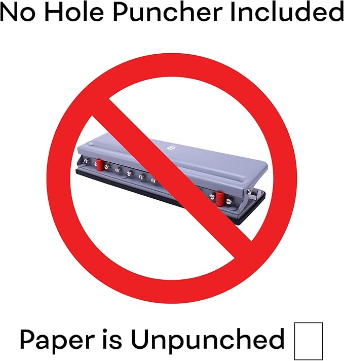 - Paper Stats: 7 x 9.25 inch, blank, white, unpunched, loose leaf, 120 GSM thickness, 200 sheets per pack. Hole puncher NOT included, pre-punched discbound paper cannot be fed through printers, so holes must be punched AFTER printing.
