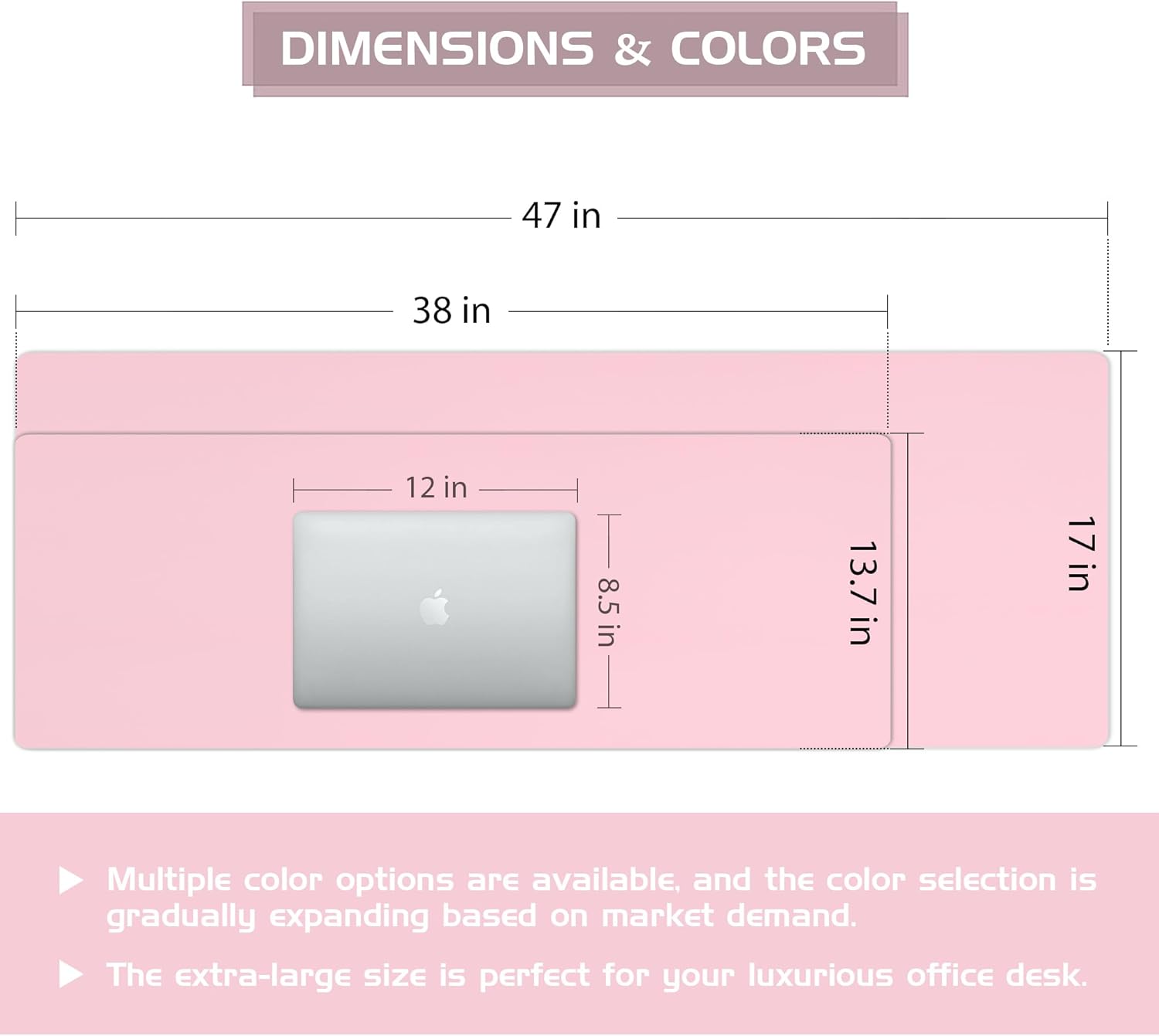 Aothia Leather Desk Pad Protector - Large Mouse Pad, Office Desk Mat, Non-Slip PU Leather Desk Blotter, Laptop Desk Pad, Waterproof Desk Writing Pad for Office and Home (Pink, 38" x 13.7")