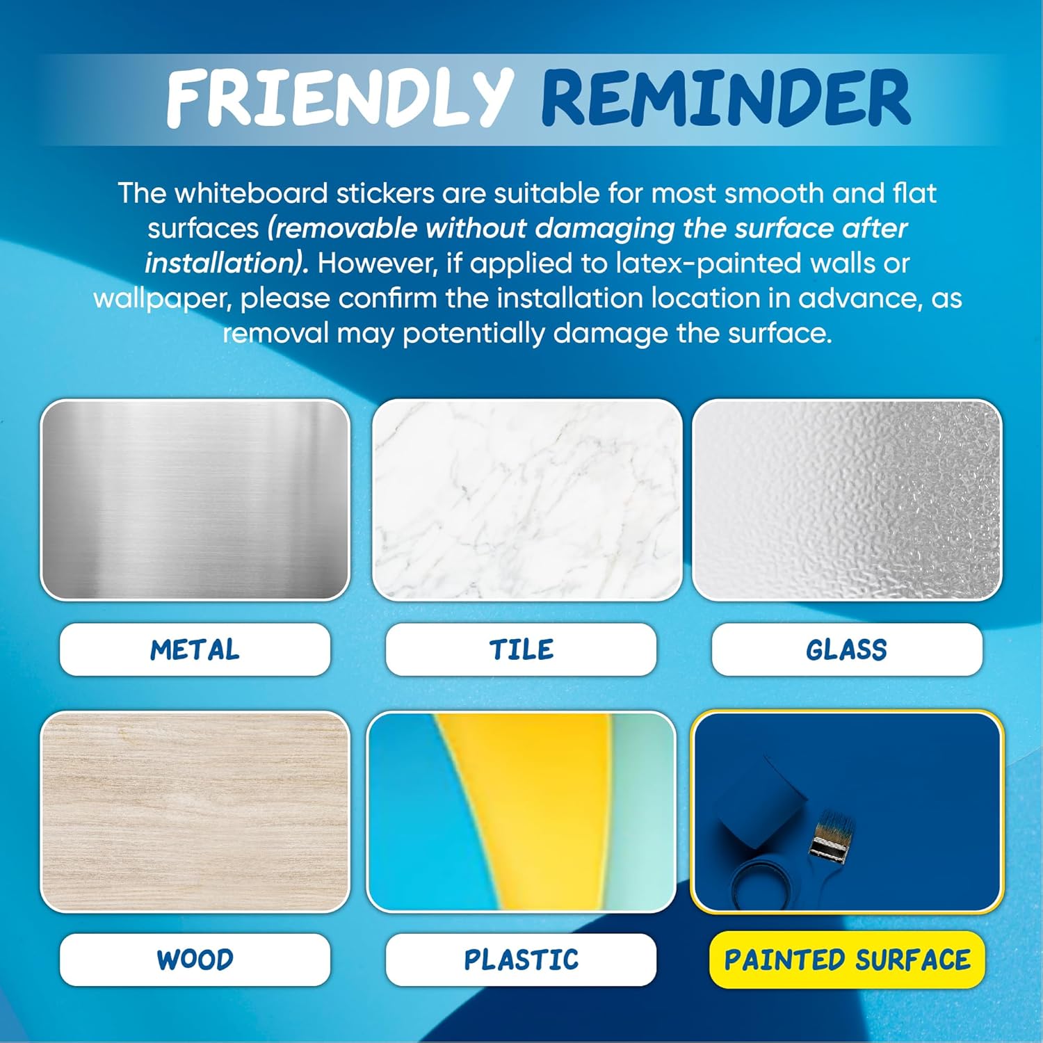 - Starter Kit: A handy starter kit is included to help you get the most out of your whiteboard surface. This magnetic whiteboard is suitable for home, kitchen, office, classroom, studio, and more