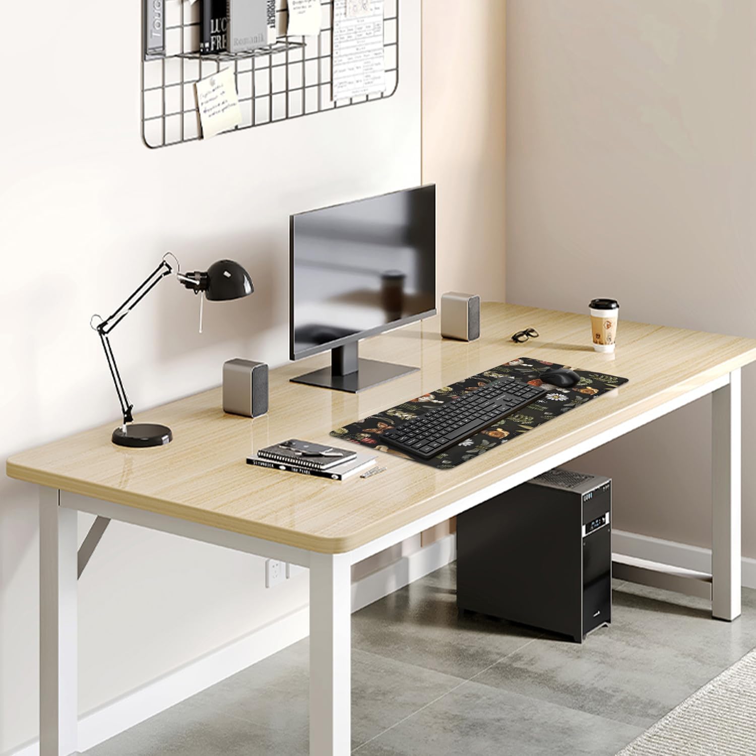 Plant Mushroom Desk Pad Mouse Pad,Large Black Aesthetic Mouse Mat with Stitched Edges,Non-Slip Rubber Base Mousepad for Office PC Keyboard Laptop and Home Work Desk Mat(27.5X11.8 in)
