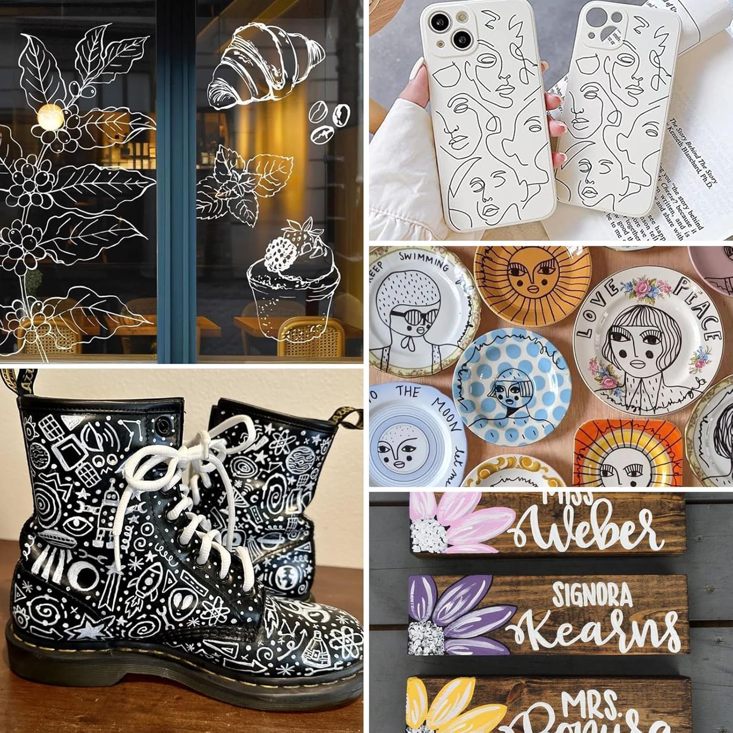 - USE ON MULTIPLE SURFACES - These paint markers can be used on many surfaces including painted wood, ceramic, glass, plastic, rock, canvas, and more for various DIY craft and art projects.