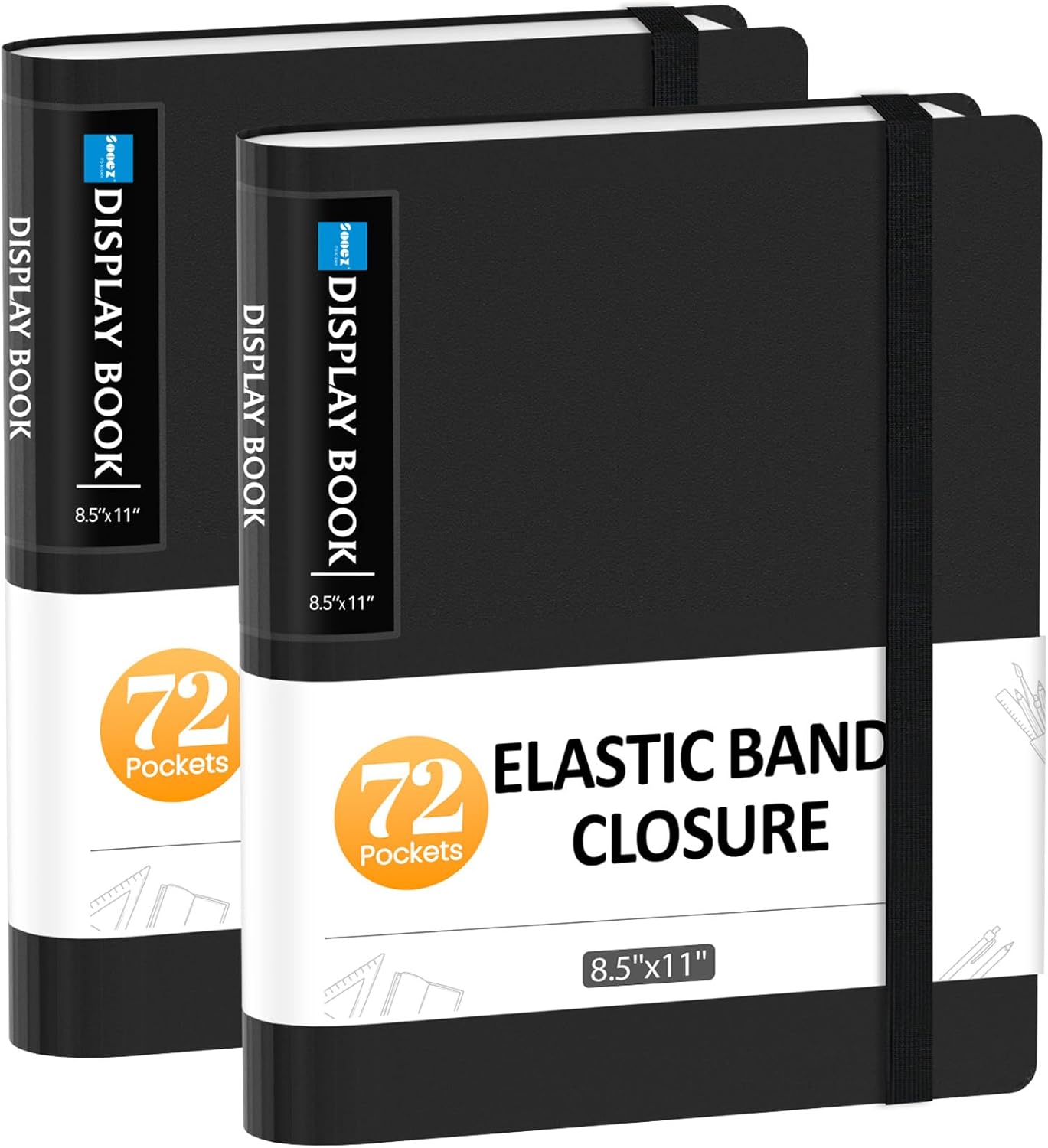 - 72-Pocket Portfolio Display Book: Each art binder with 72 bound (non-refillable) top-loading clear sheet protectors, letting you show 144 pages of 8.5x11" letter size or smaller. Folder measures 11 1/2" (L) x 9 11/16" (W) x 1 1/2" (G).