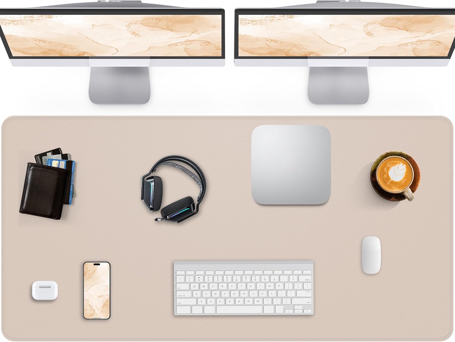 Extra Large Desk Pad Mat - Waterproof Mouse Pad & Desk Protector, Non-Slip XXL PU Leather Gaming Mat for Keyboard/Mouse, Stitched Edge with Ergonomic Support, 55"x24" (Beige)