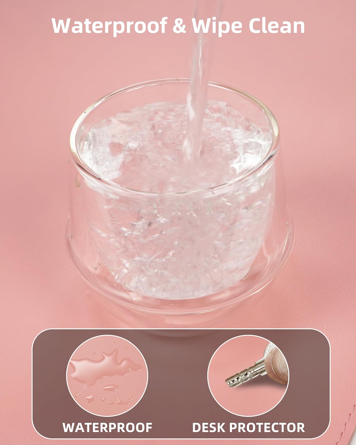 Large Desk Pad Mat - Waterproof Mouse Pad & Desk Protector, Non-Slip XL PU Leather Gaming Mat for Keyboard/Mouse, Stitched Edge with Ergonomic Support, 47"x17" (Pink)