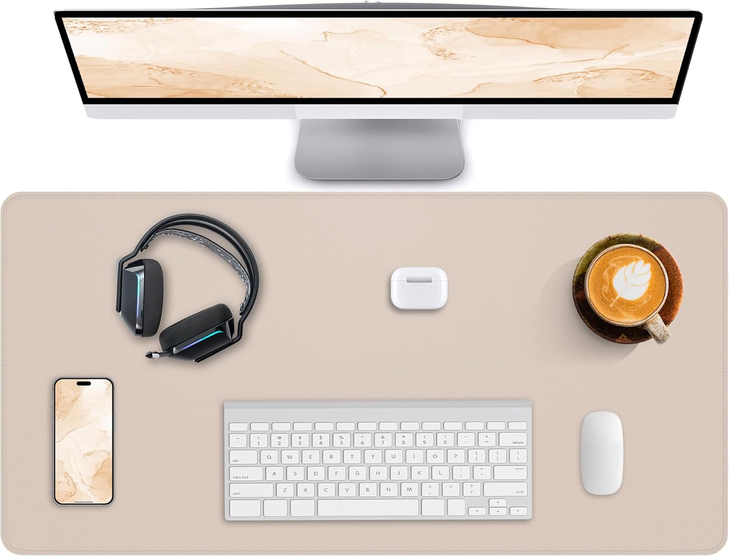 Leather Desk Pad Protector,Office Desk Mat,Large Mouse Pad, Non-Slip PU Leather Desk Blotter,Desk Pad,Waterproof Desk Writing Pad for Office and Home (Beige,31.5" x 15.7")