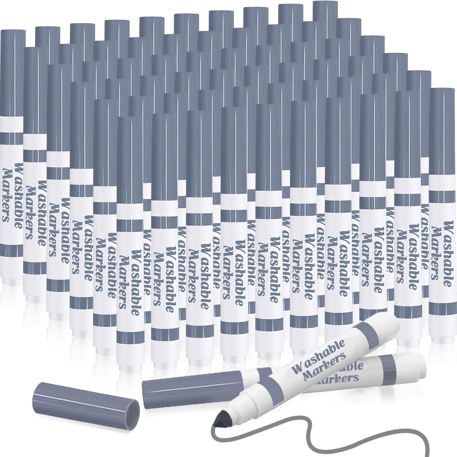 Janlaugh 60 Pcs Gray Washable Markers Bulk Coloring Broad Line Markers for Kids Conical Tip Gray Drawing Pens for Classroom Back to School Travel Art Baby Shower Gender Reveal Supplies, Ages 6+